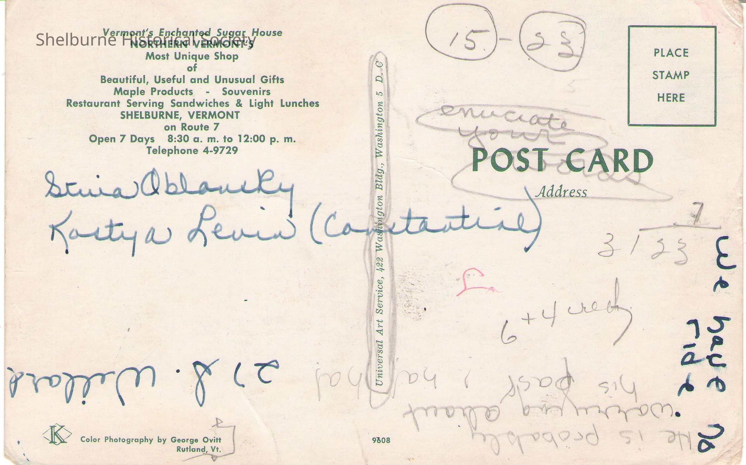 Postcard with an Image of the Enchanted Sugar House on Route 7 Shelburne, Vermont