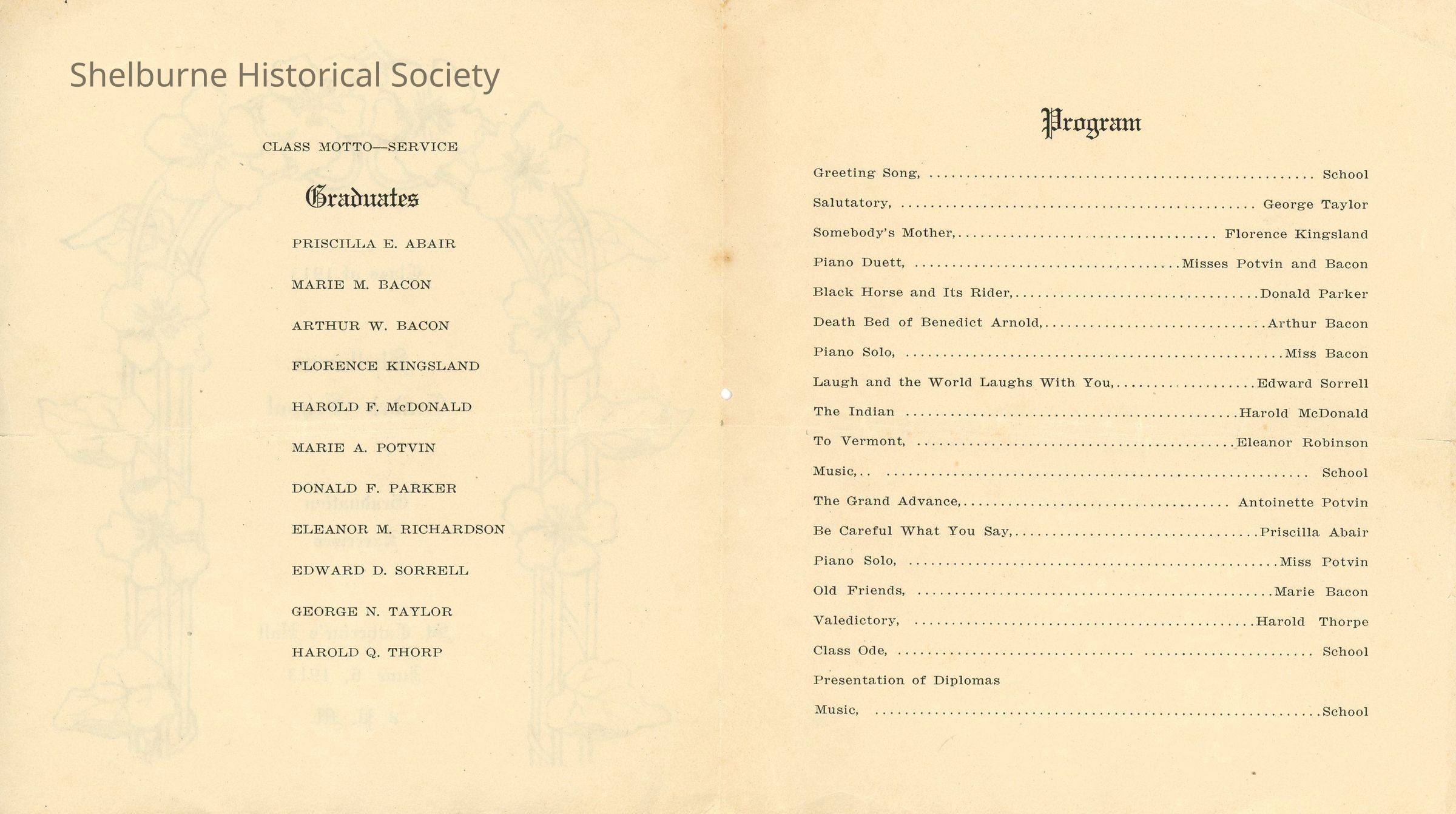 Abair, Priscilla E., Bacon, Marie M., Bacon, Arthur W., Kingsland, Florence, McDonald, Harold F., Potvin, Marie A., Parker, Donald F., Richardson, Eleanor M., Sorrell, Edward D., Taylor, George N., Thorpe, Harold Q., St. Catherine's Catholic Church