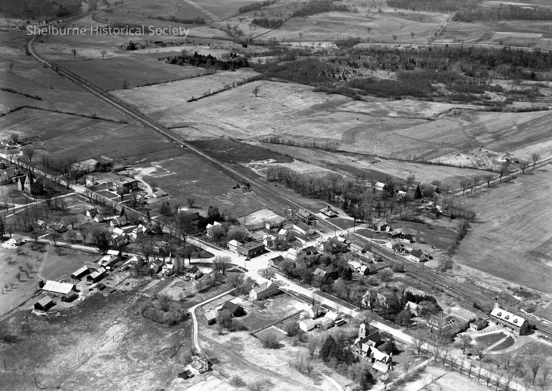 Photograph Aerial View of Shelburne Village view southwest.