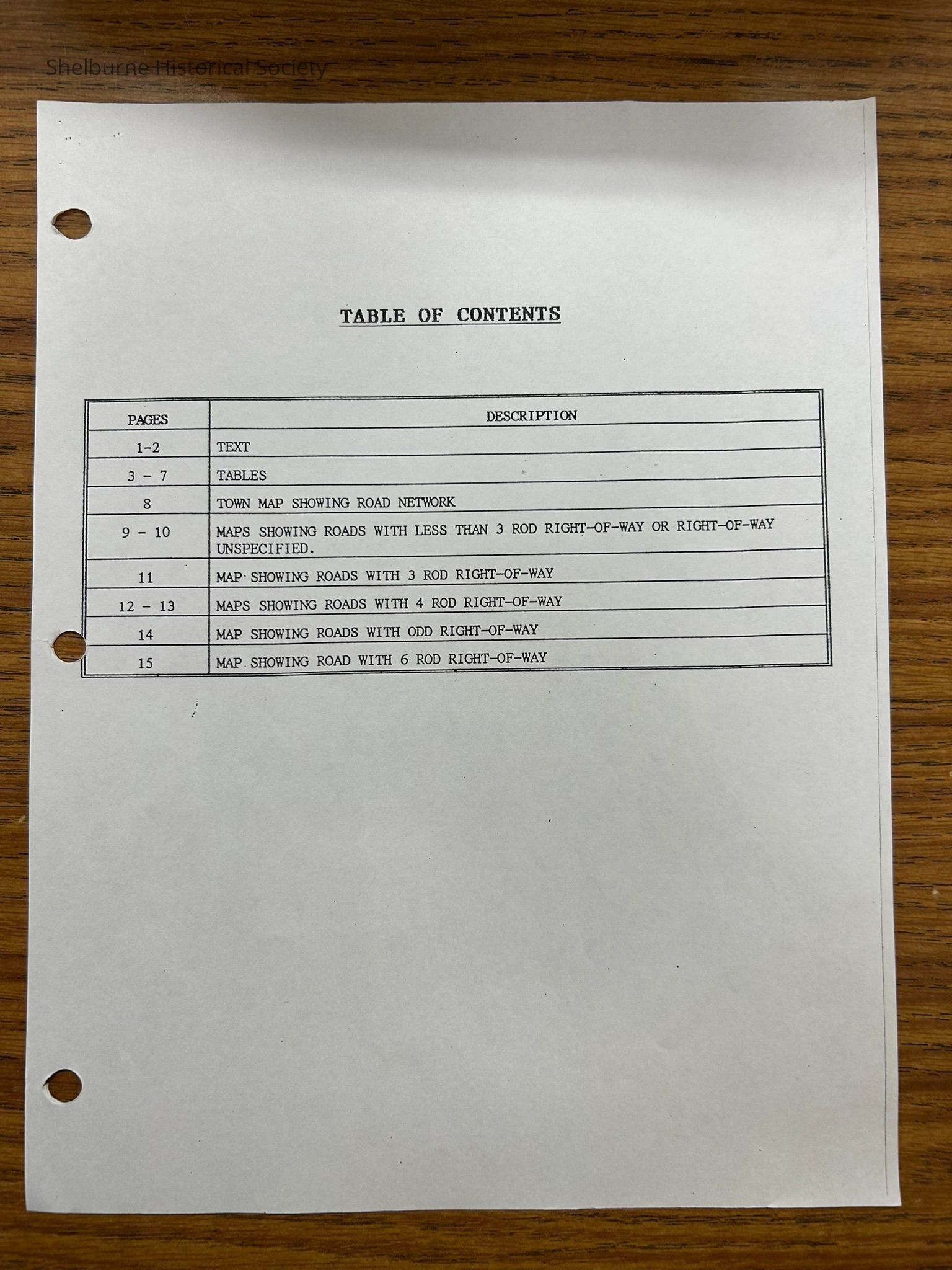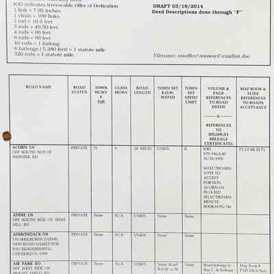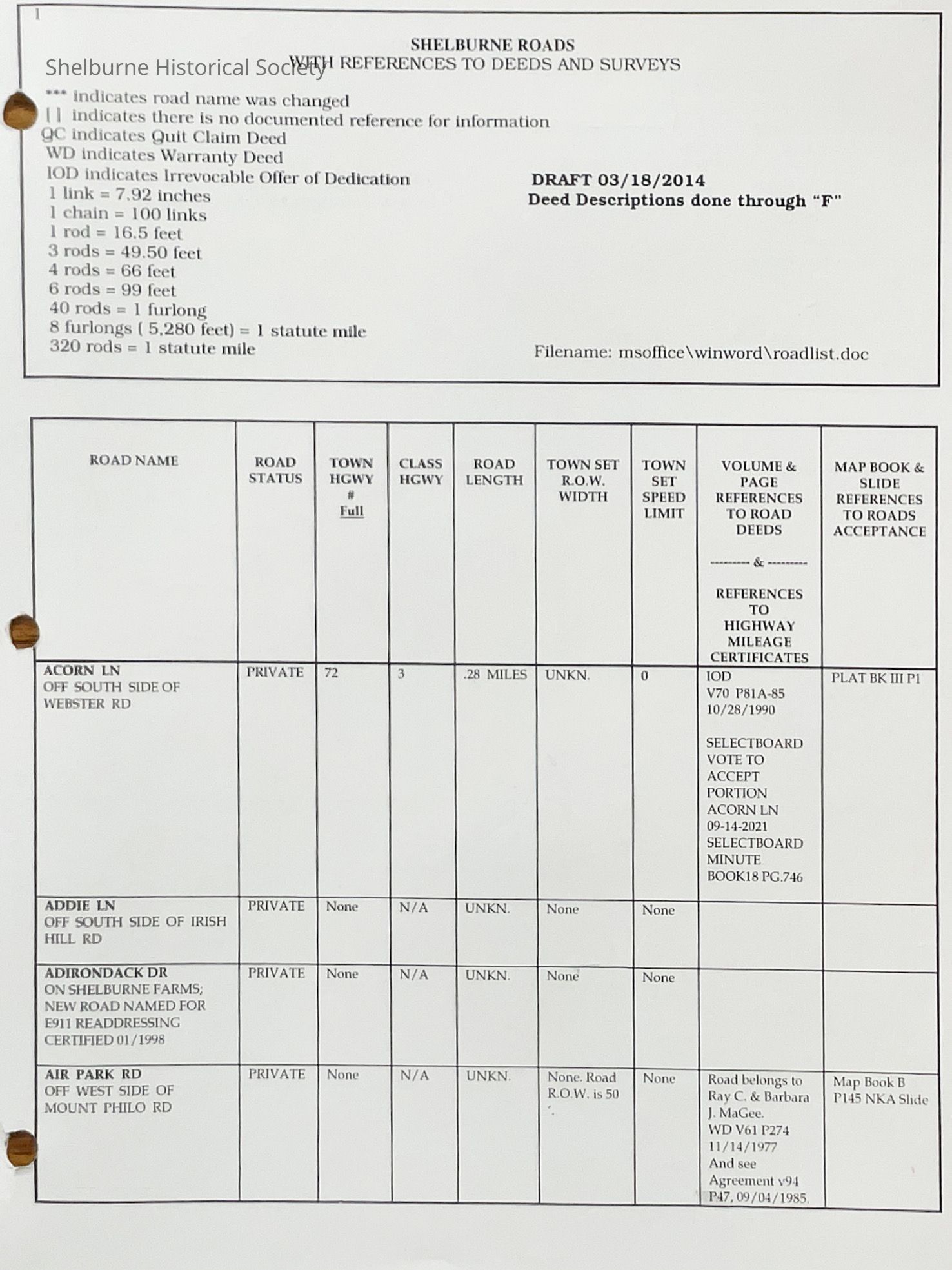 The records collected included all deeds that were adjacent to the individual roads in addition to other documentation including surveys, maps, census records.Lexicon