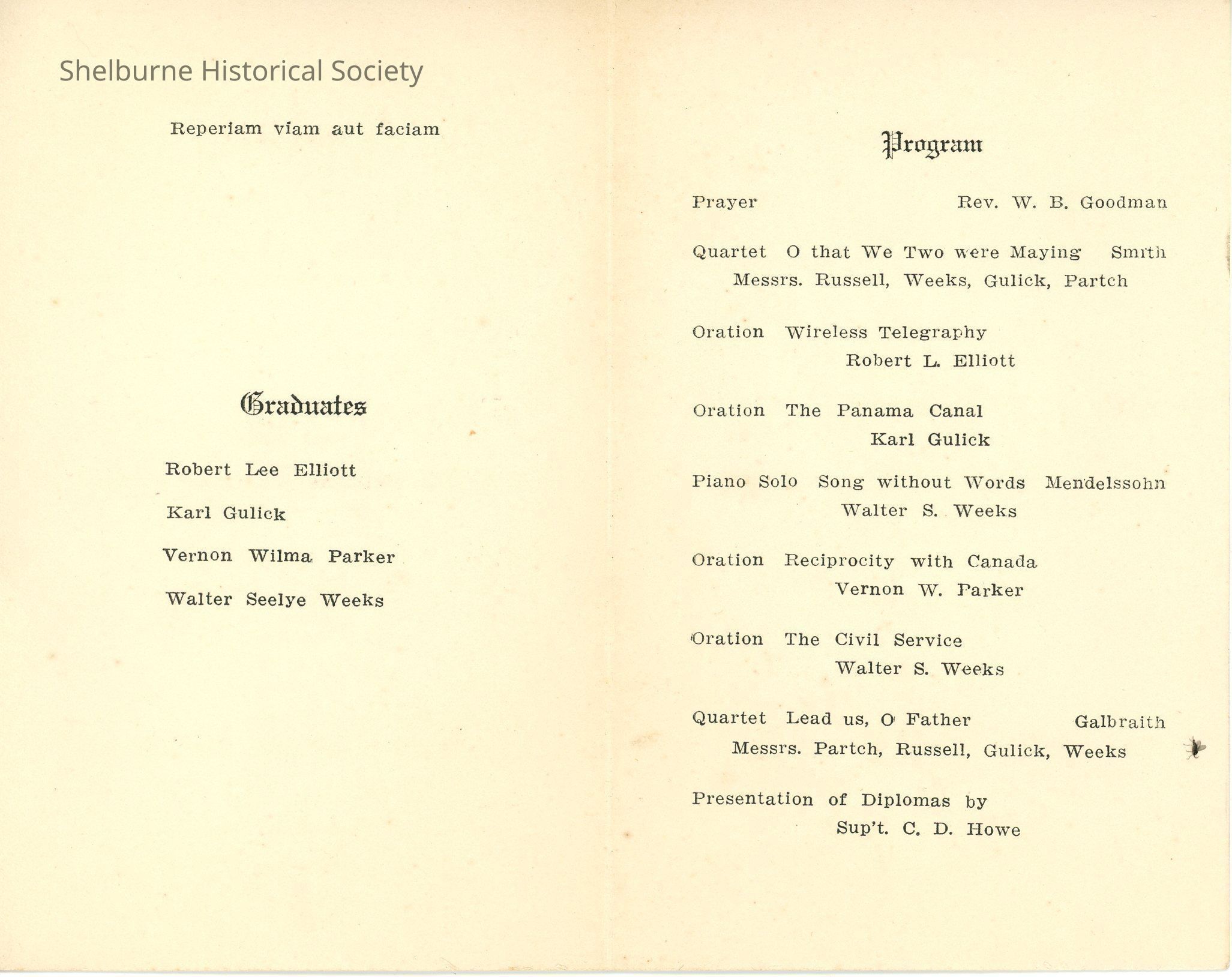Shelburne High School Graduating Exercises Program 1911Lexicon