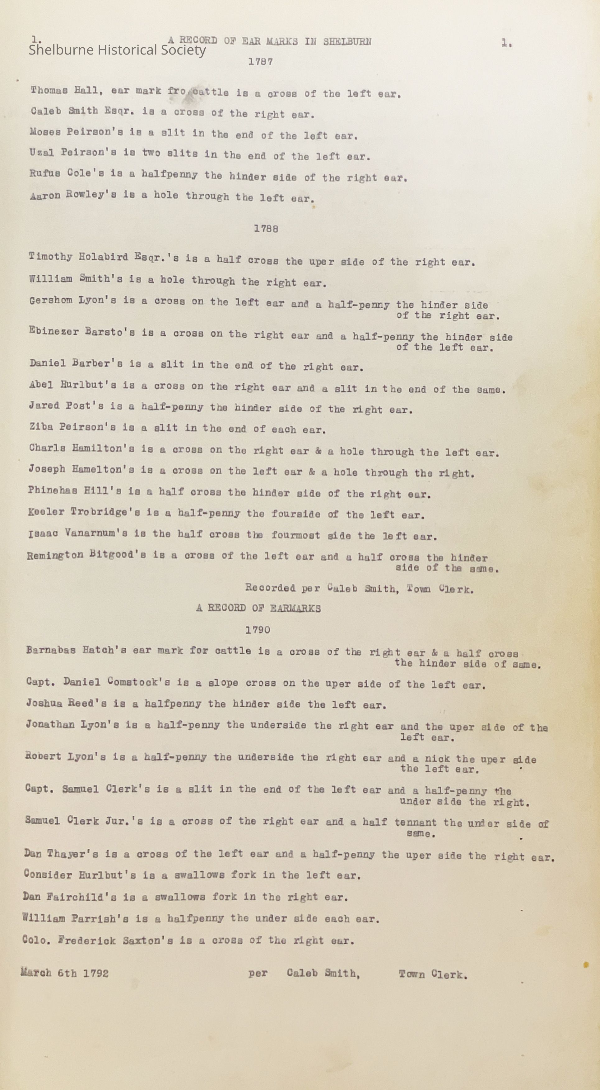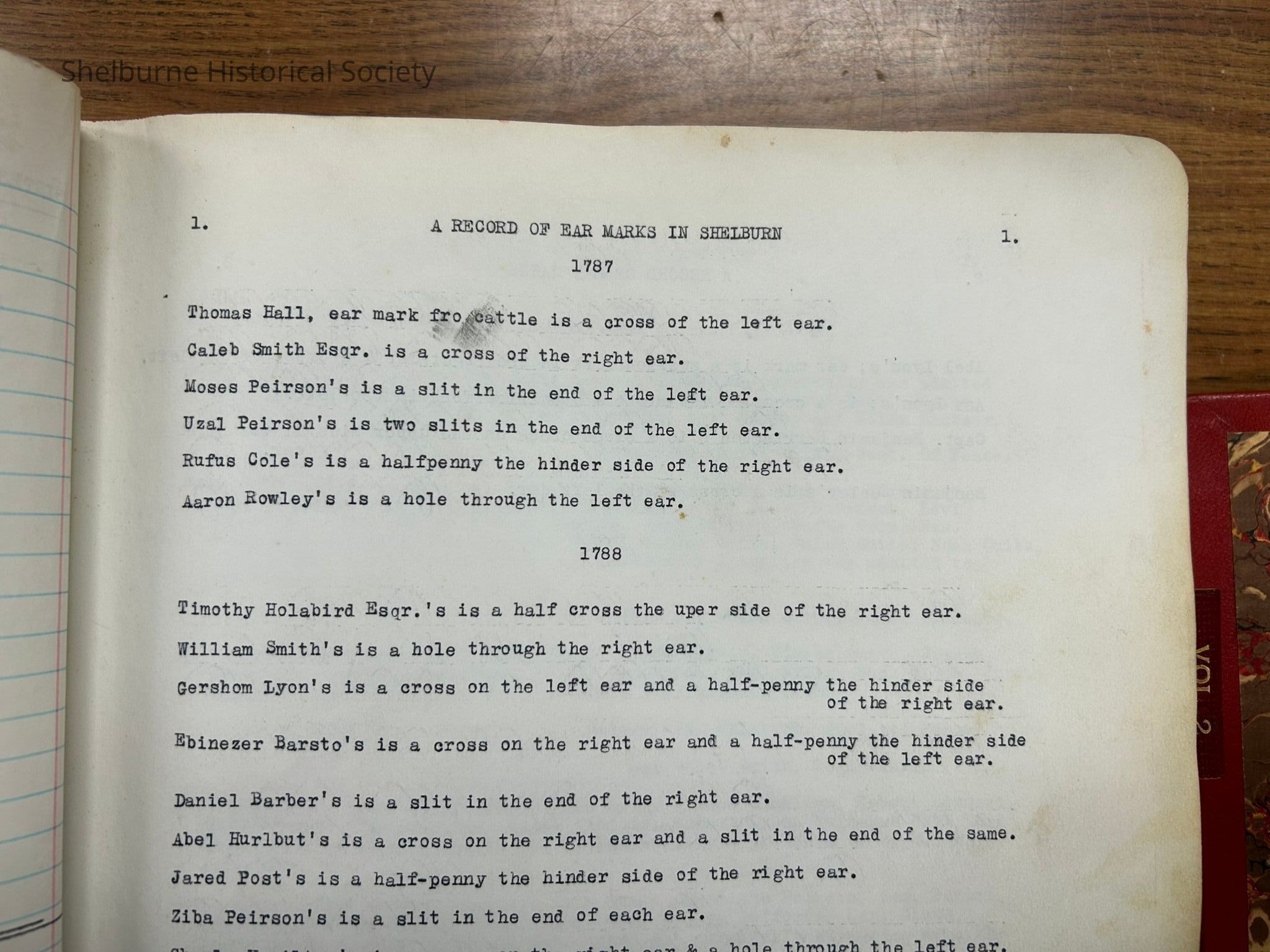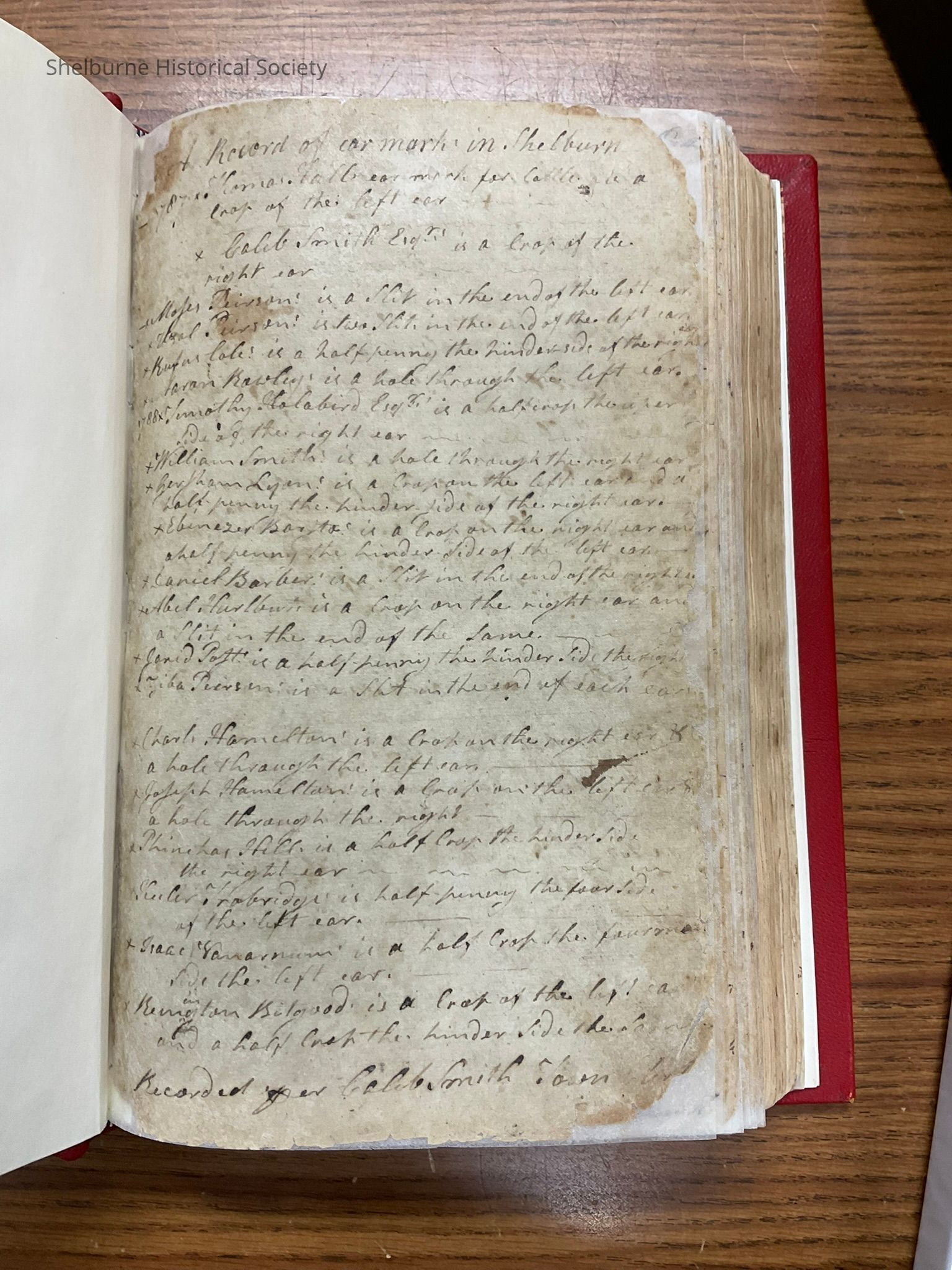 Shelburne town records began in 1787 and were handwritten as the events happened page by page as they occurred. As the the activities of the town and number of records increased, the separation of the types of records, i.e. meeting minutes, vital records, etc., separated into collections of the same types of records.