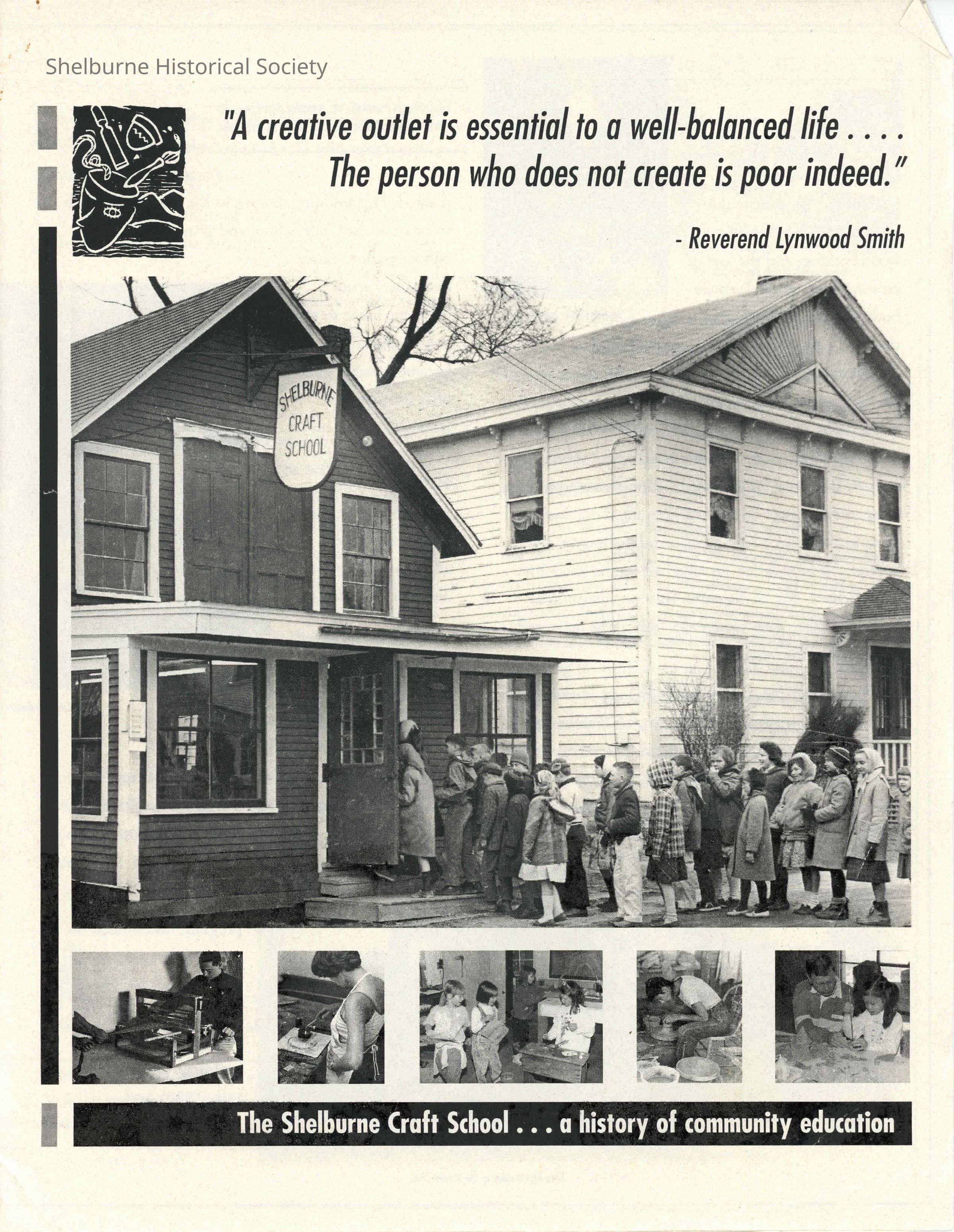 The current Craft School building originally served as the harness shop associated with Shelburne Blacksmith Shop which was located next door to the West.Lexicon