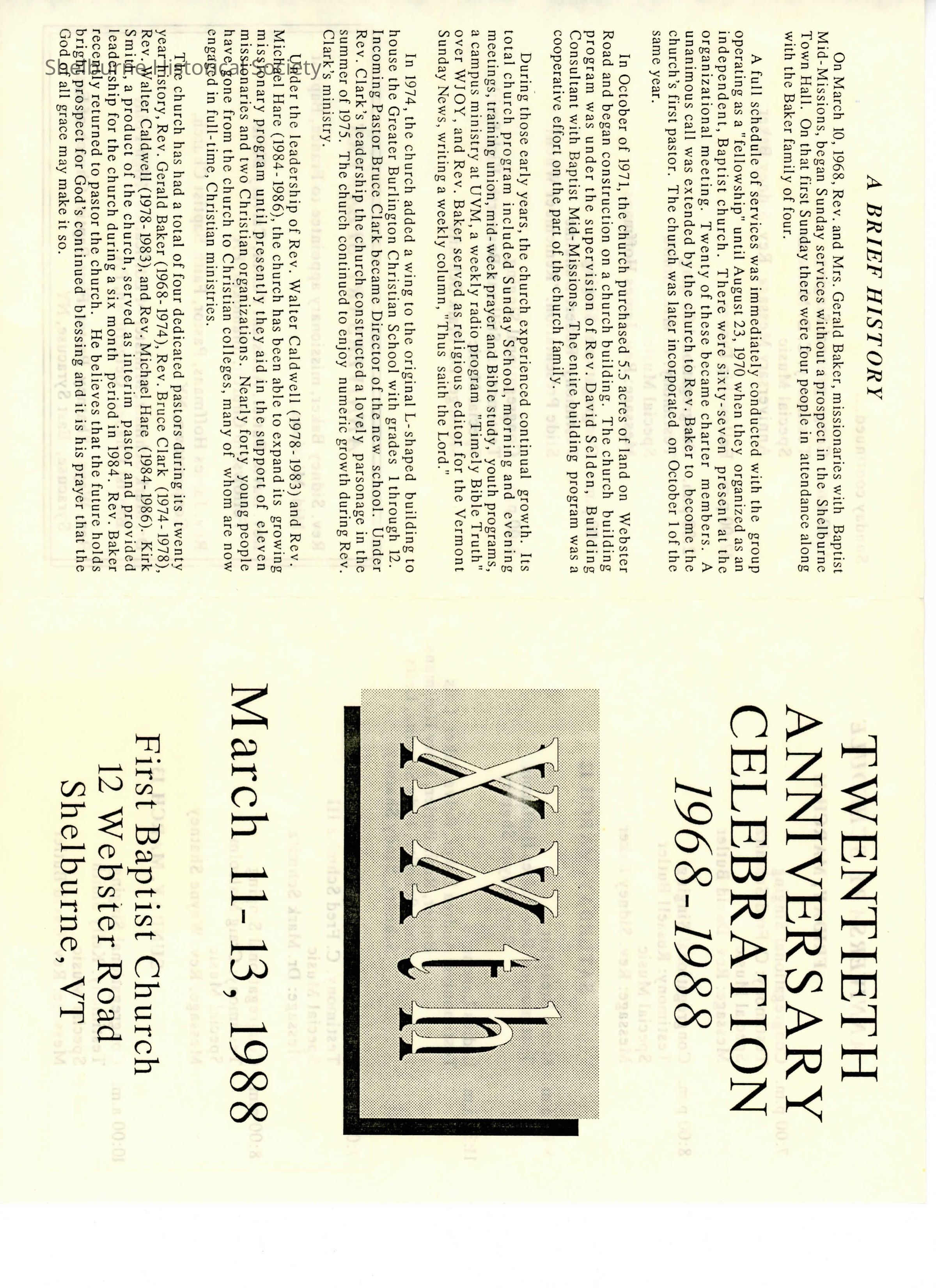 A small collection of items about the First Baptist Church of Shelburne Vermont include a brief history.