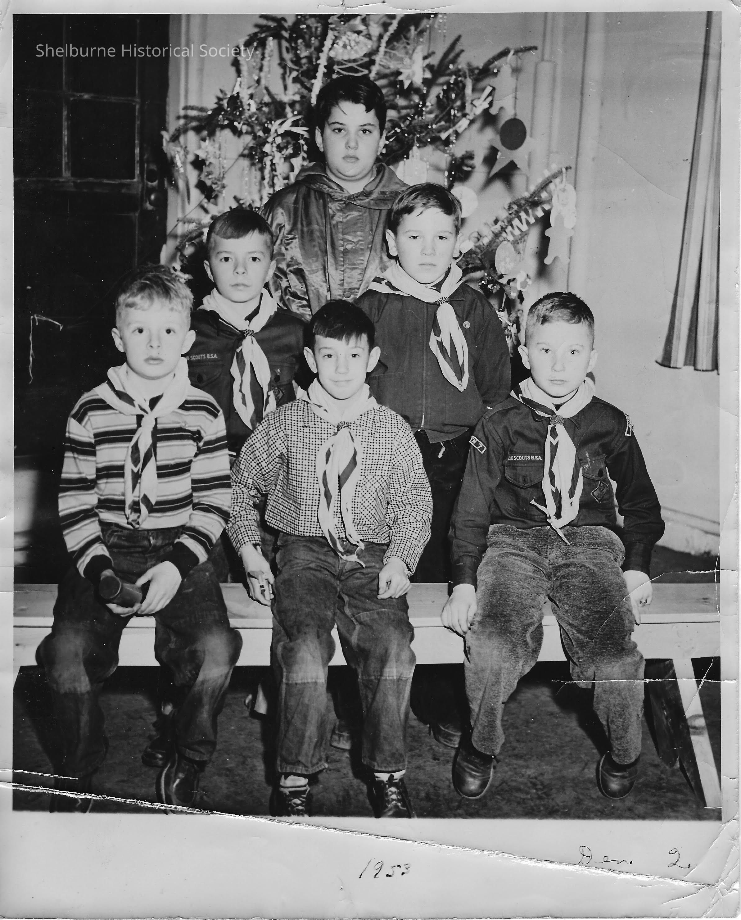 Shelburne Cub Scouts Den 2 Shelburne Vermont, 1953. Bernadette Sinnott was the leader of this group which included James and Bill Sinnott, her sons.Subject Place