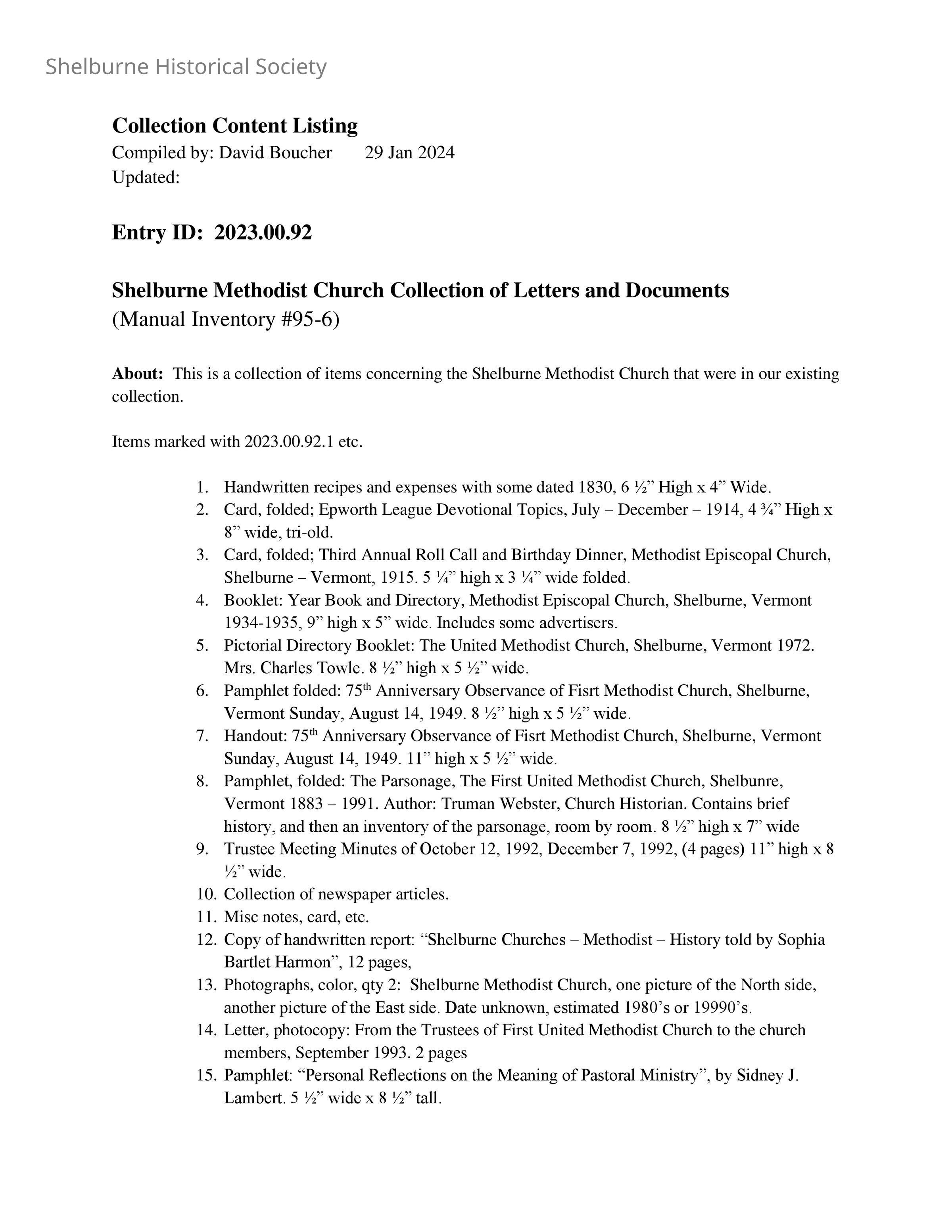 This is a collection of items concerning the Shelburne Methodist Church that were in our existing collection.Relationships