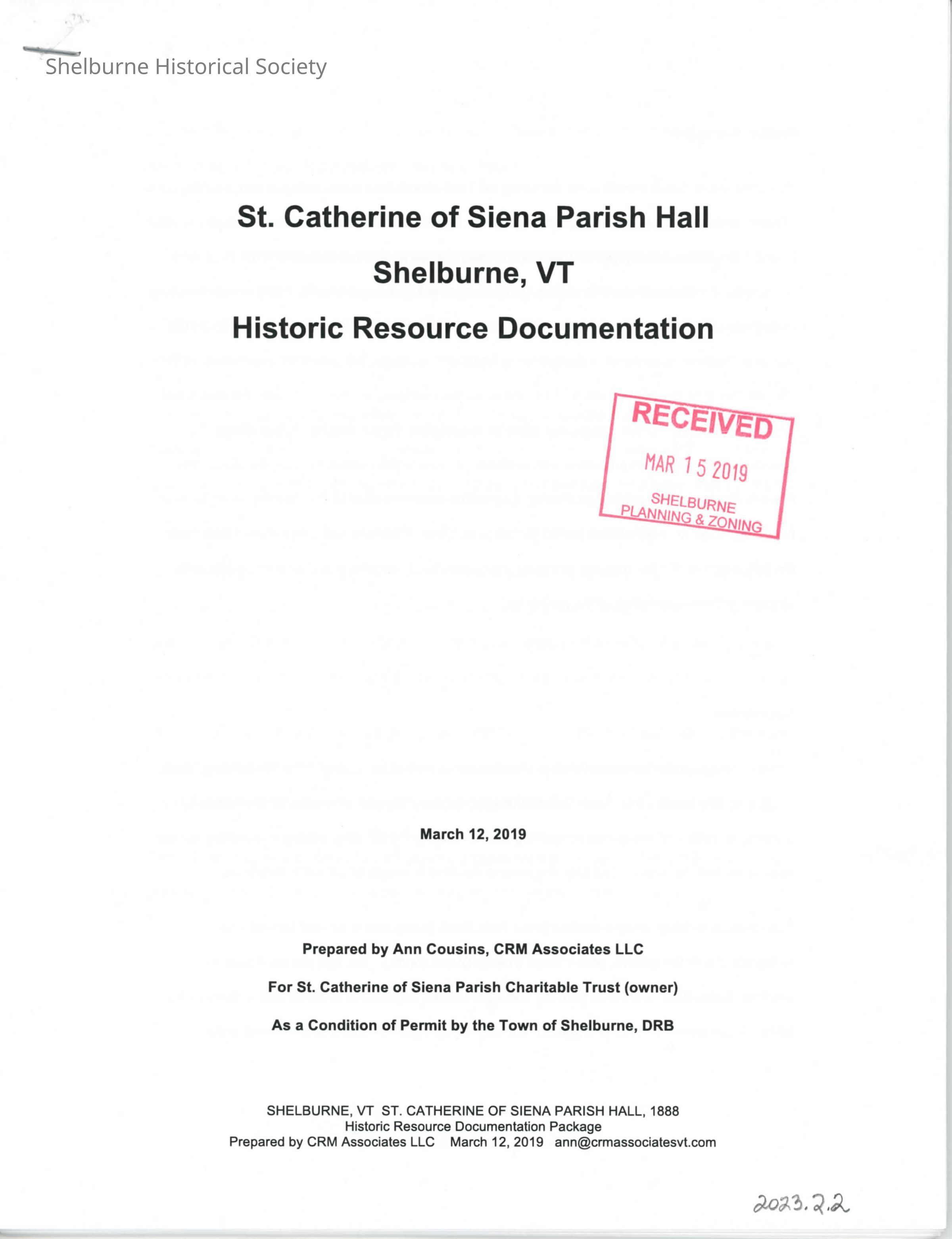 St. Catherine of Siena Parish Hall, Shelburne, Vermont Historic Resource DocumentationEntry/Object ID