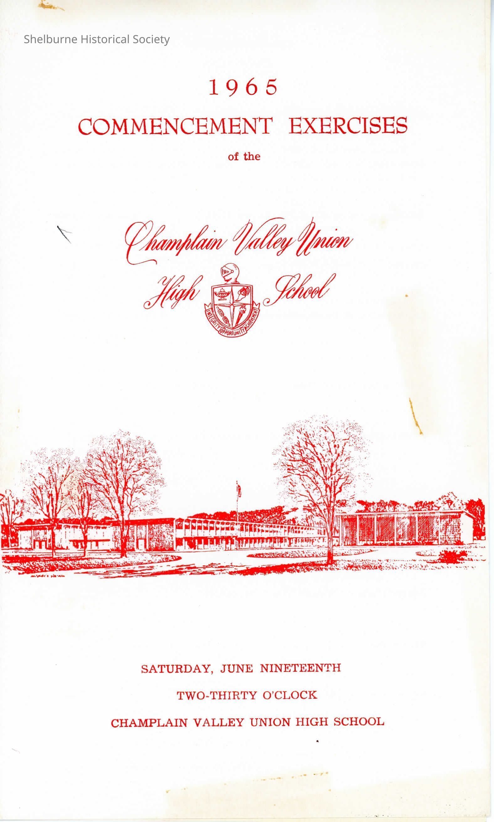 The booklet "1965 Commencement Exercises of the Champlain Valley Union High School".