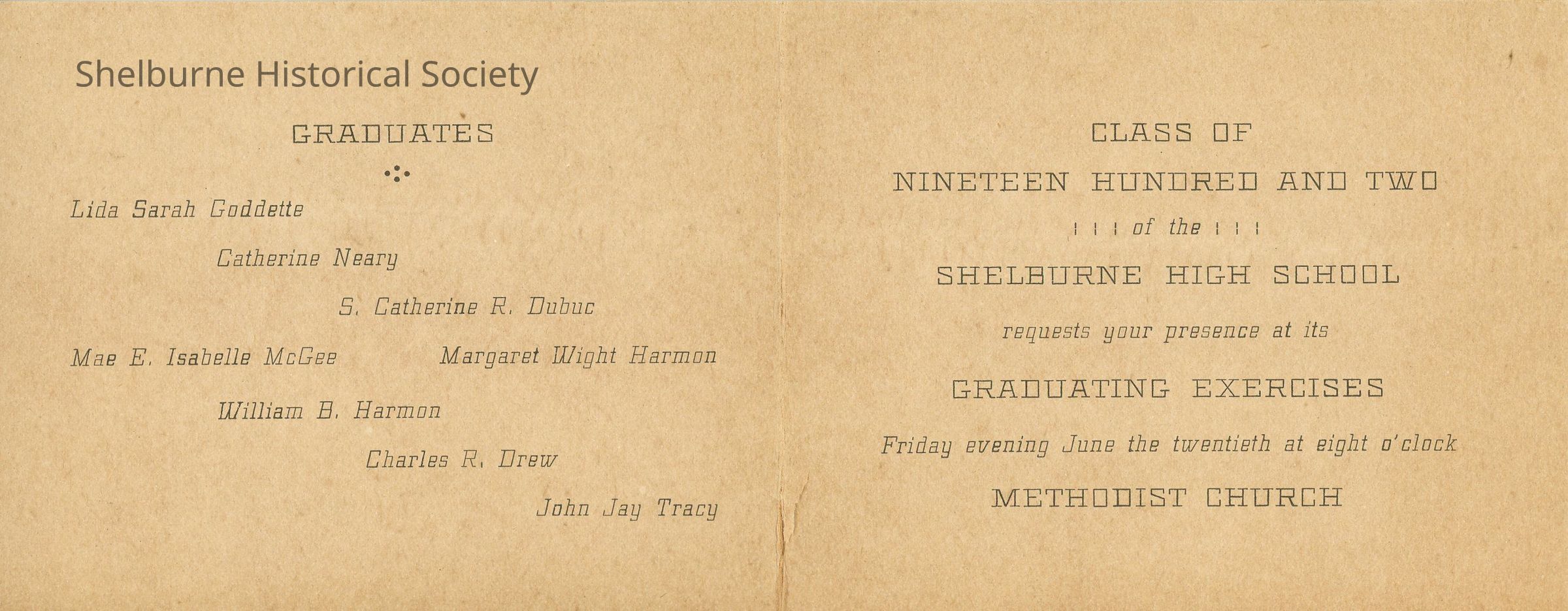 Graduation Exercises of the Shelburne High School Program 1902