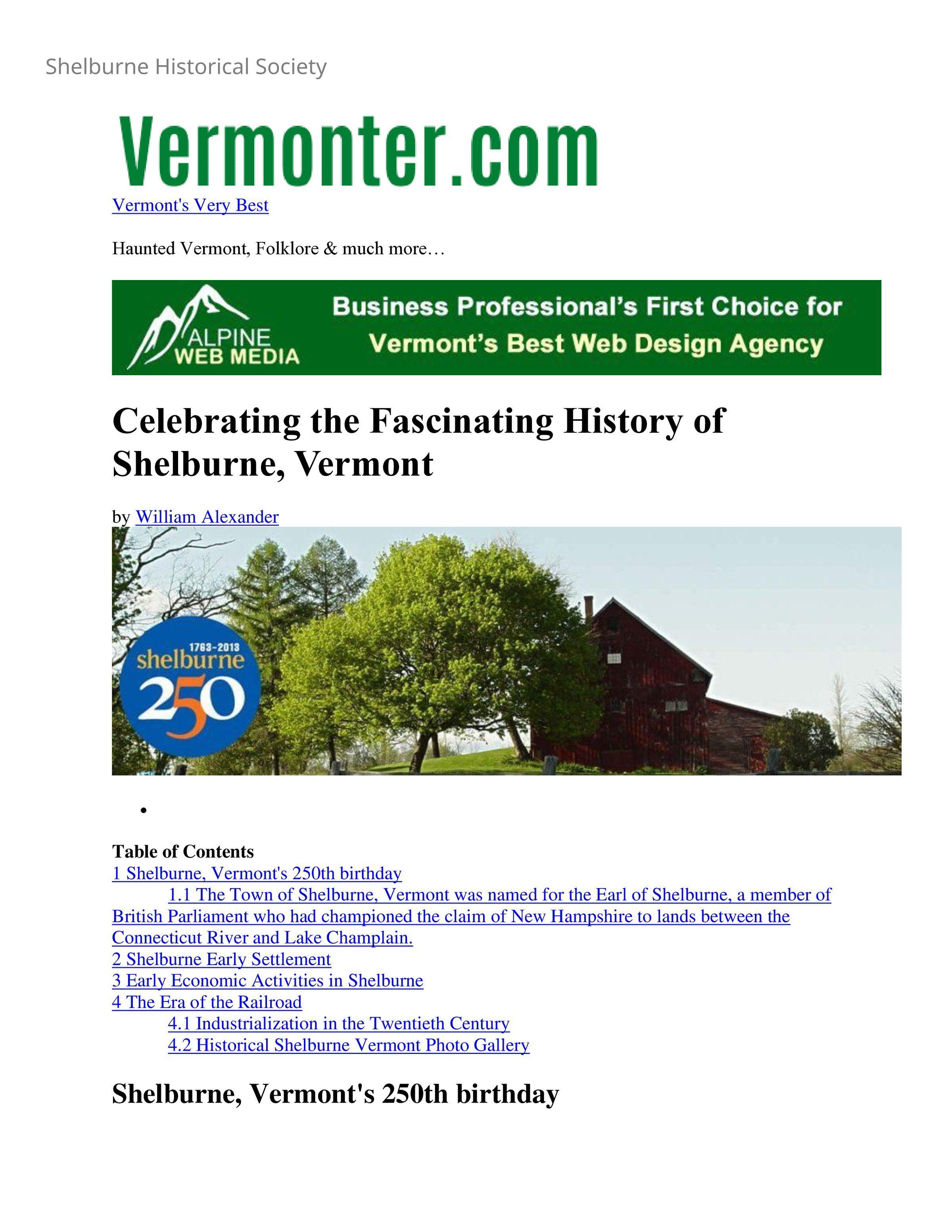 An article published on the WEB during the celebration of Shelburne Vermont 250th Celebration.Context