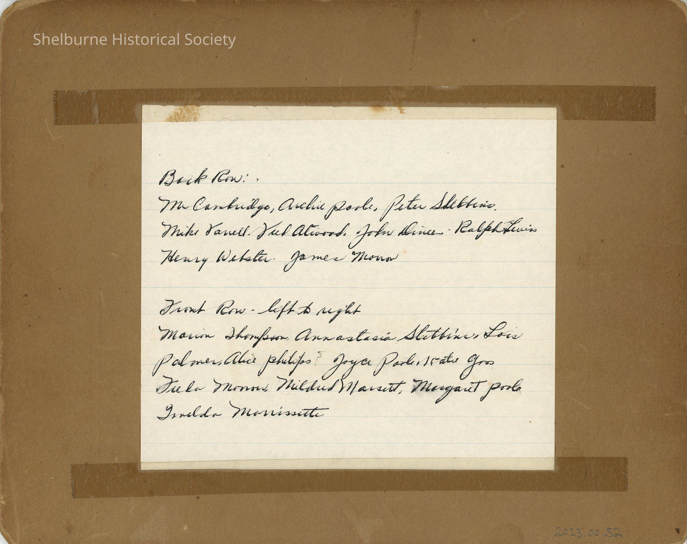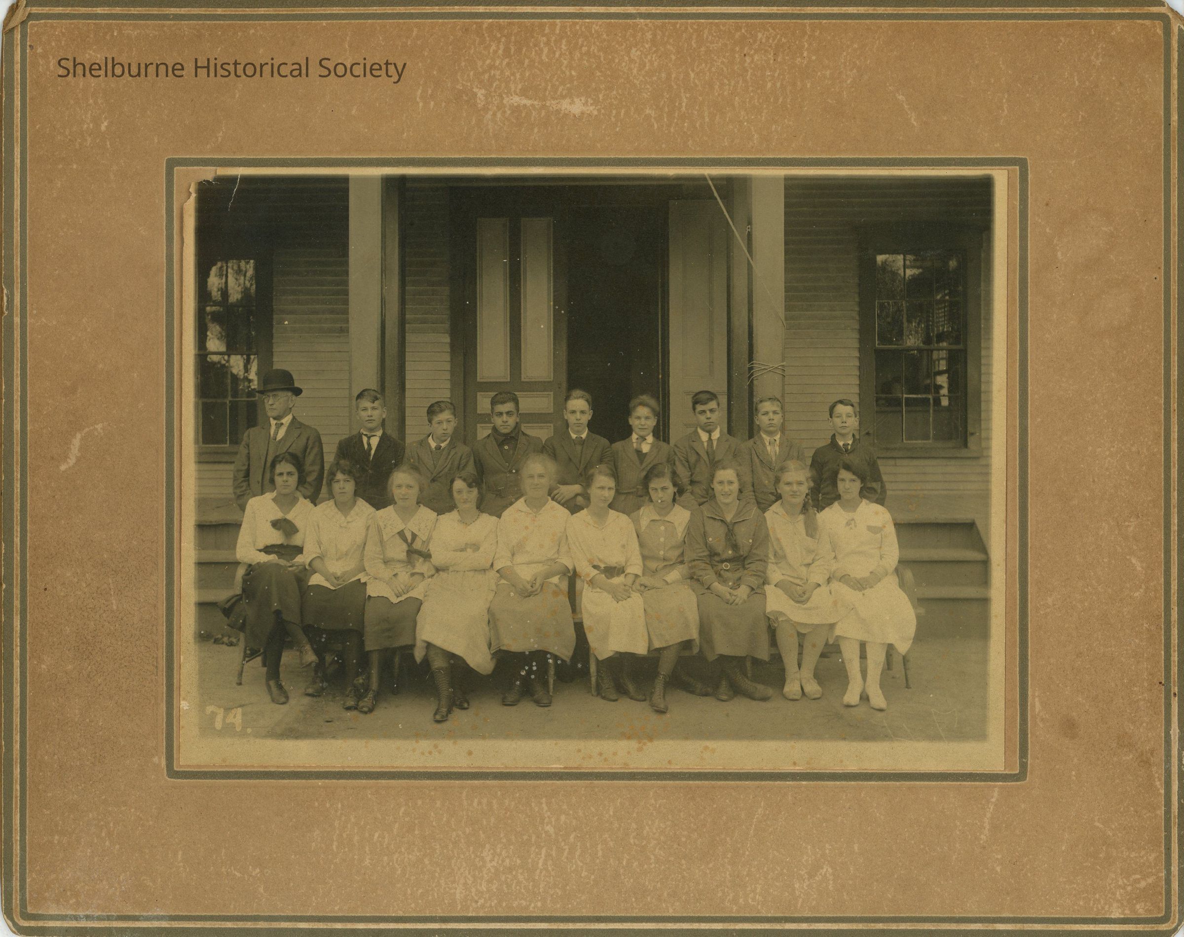 Shelburne High School, Poole, Archie, Stebbins, Peter, Yanell, Mike, Atwood, Fred, Lewis, Ralph, Webster, Henry, Morrow, James, Thompson, Marion, Stebbins, Annastasia, Palmer, Lois, Philips, Alice, Poole, Joyce, Morrow, Freda, Marsett, Mildred, Poole, Margaret, Morrissette, ImeldaSubject Place