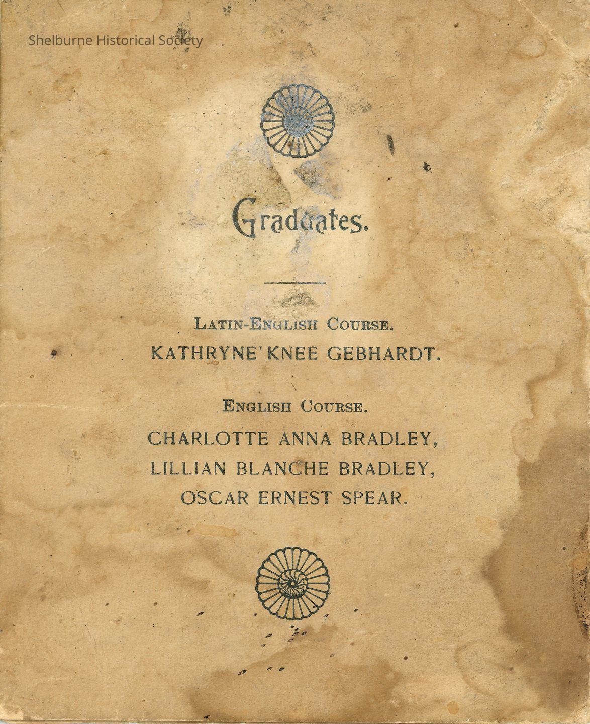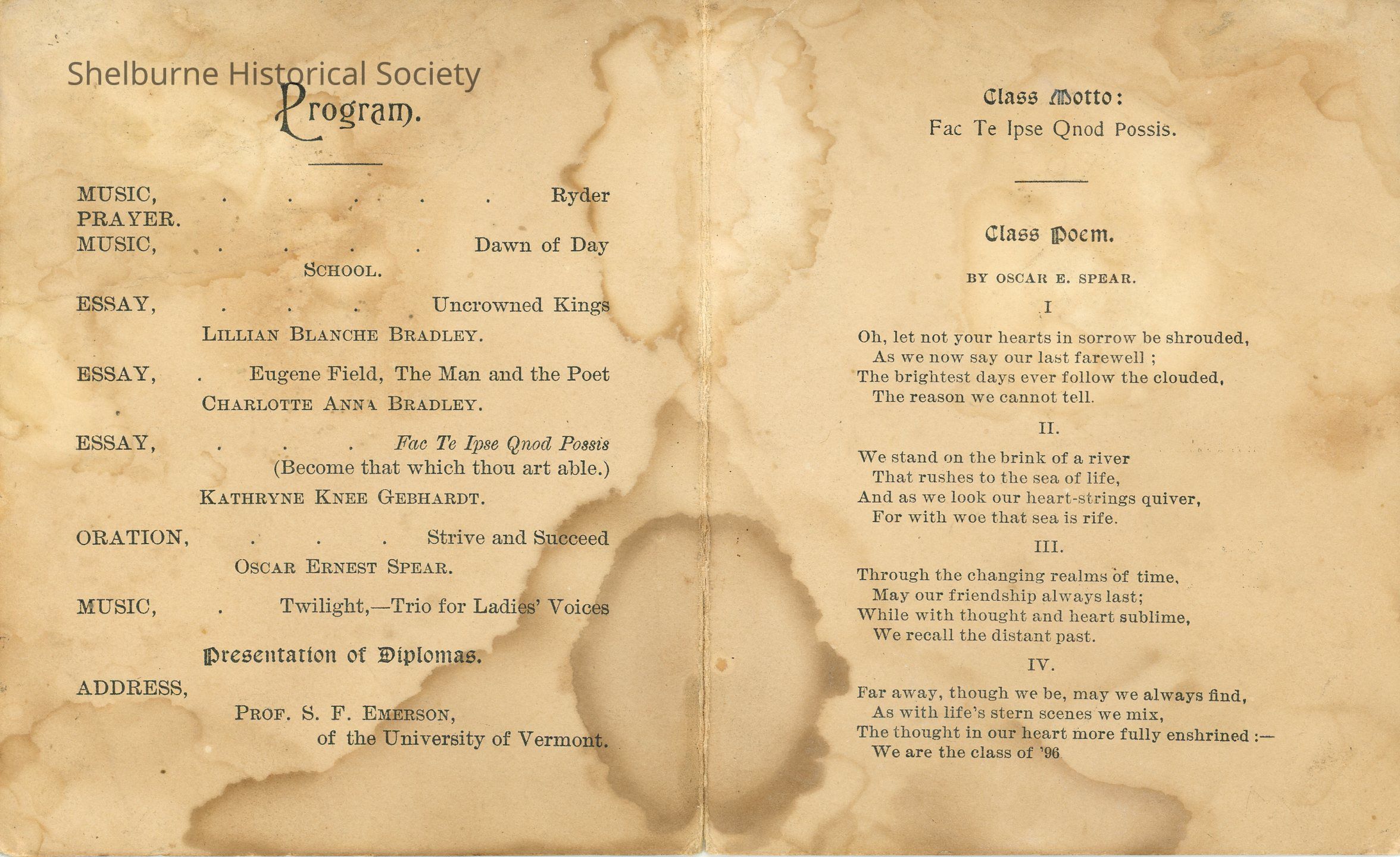 Graduating Exercises Shelburne High School Program 1896 coverLexicon