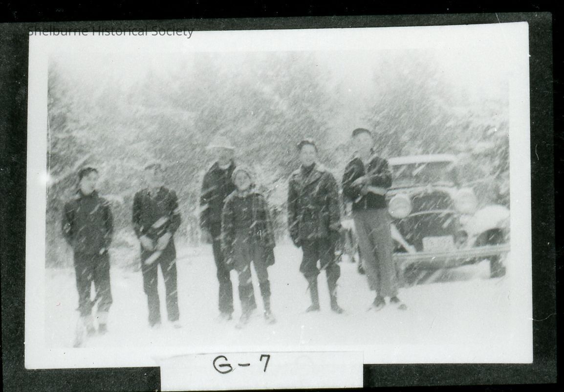 Boy Scouts ca. 1940, Five boys from Shelburne's fist scout troop, with their Scoutmaster, the Reverend J. Lynwood Smith, Rector of Trinity Episcopal Church. Robert Gadhue, Raymond and Maitland LaForce are in the group.Photograph Details
