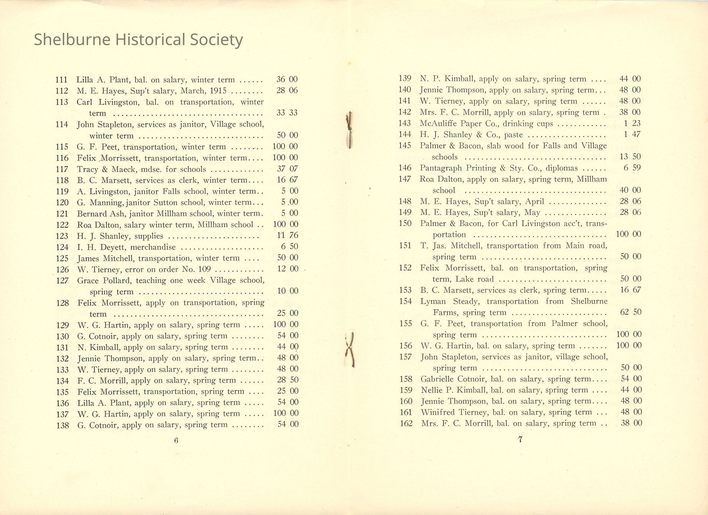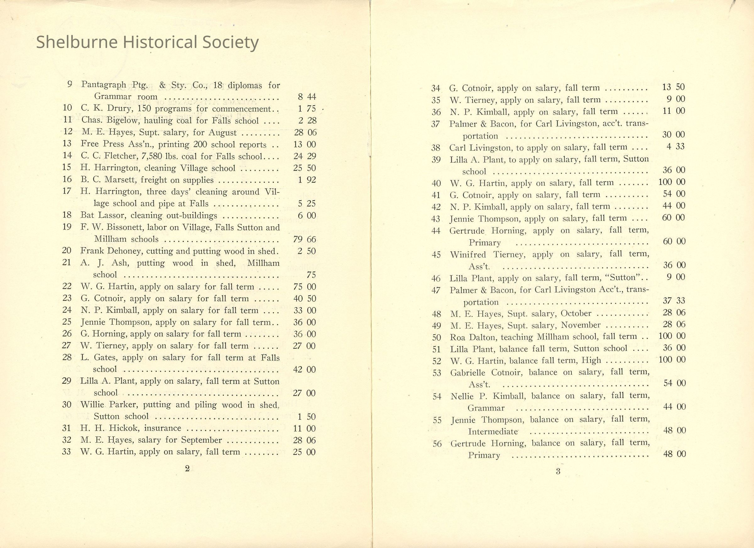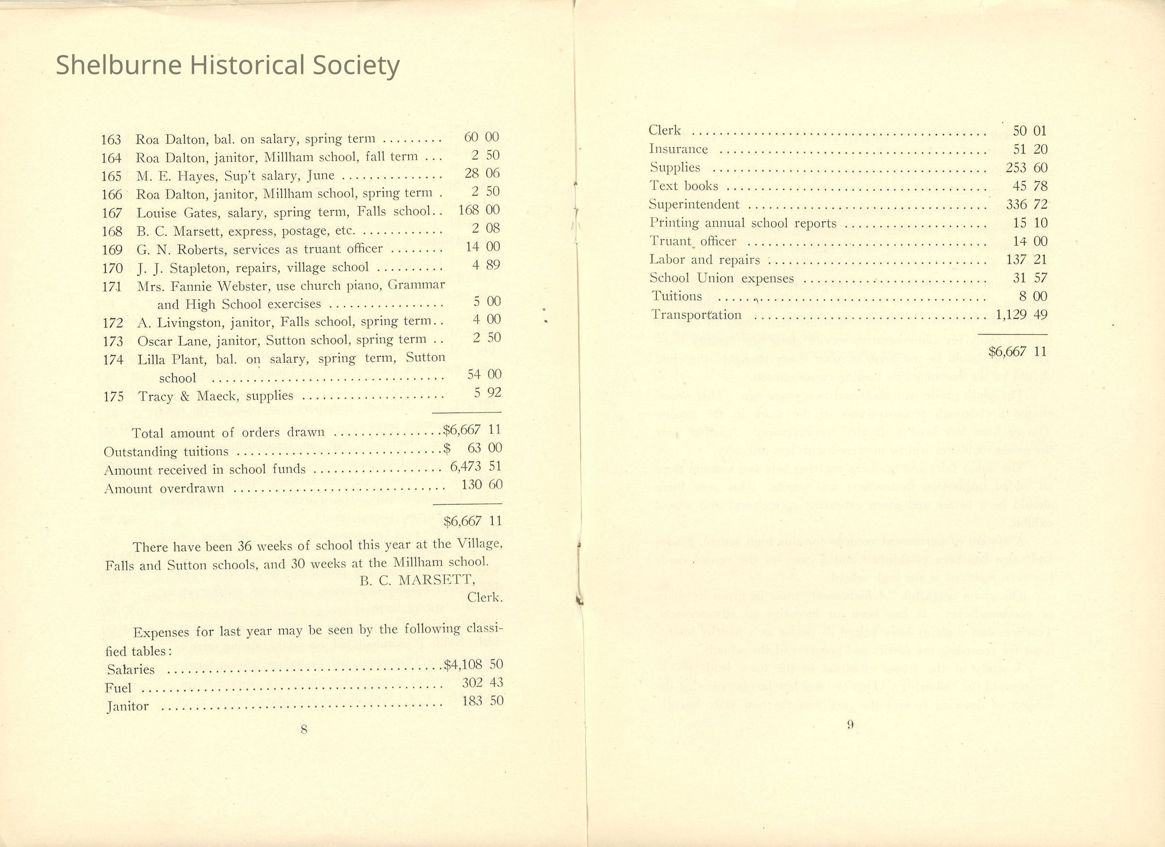 There is reference on Page 8 of several schools: "There have been 36 weeks of school this year at the Village, Falls and Sutton Schools, and 30 weeks at the Millham School."Lexicon