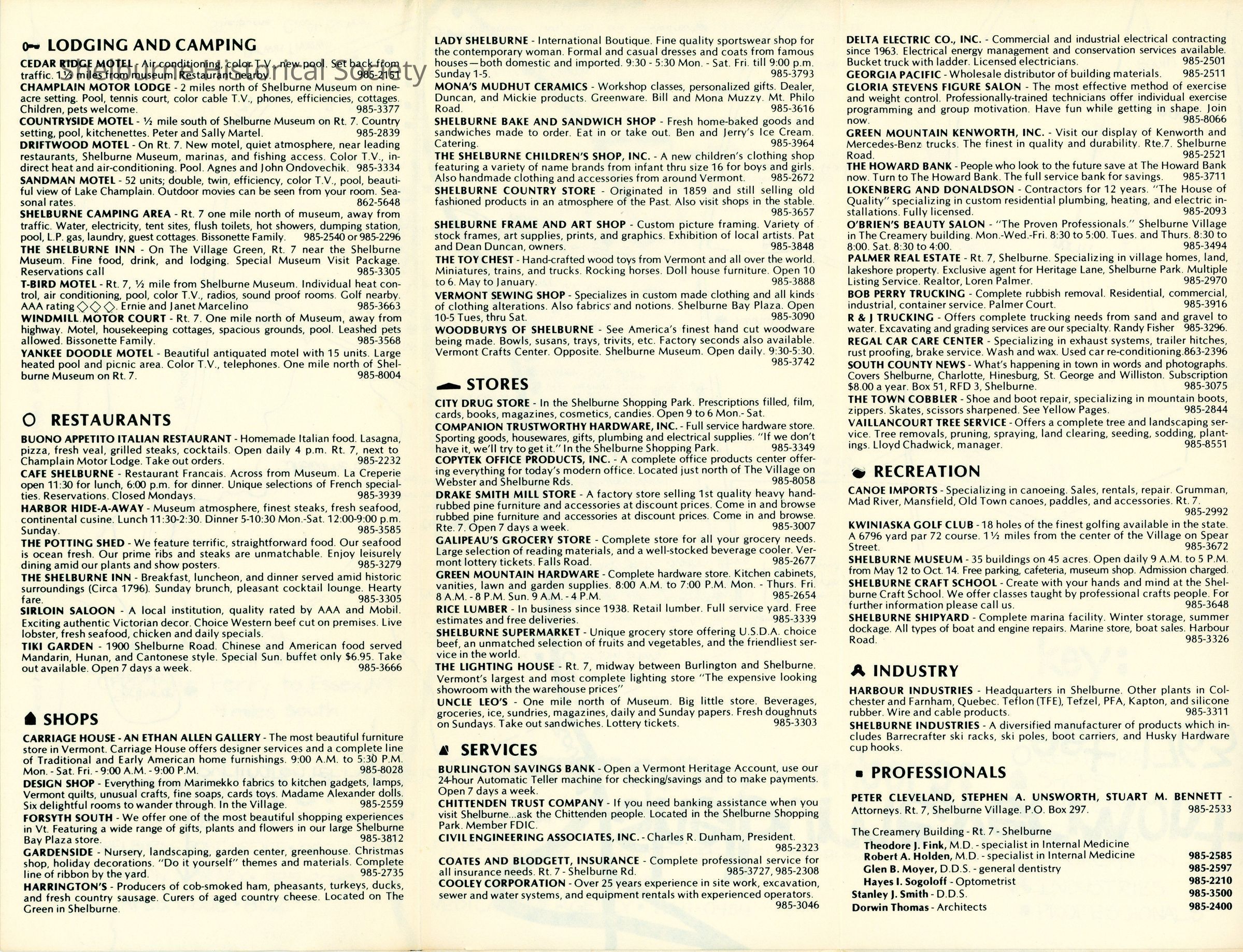 A Welcome to Shelburne, Vermont Tourist brochure.Lexicon
