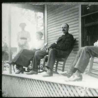 Truman B. Webster and family at home overlooking Shelburne Harbor.