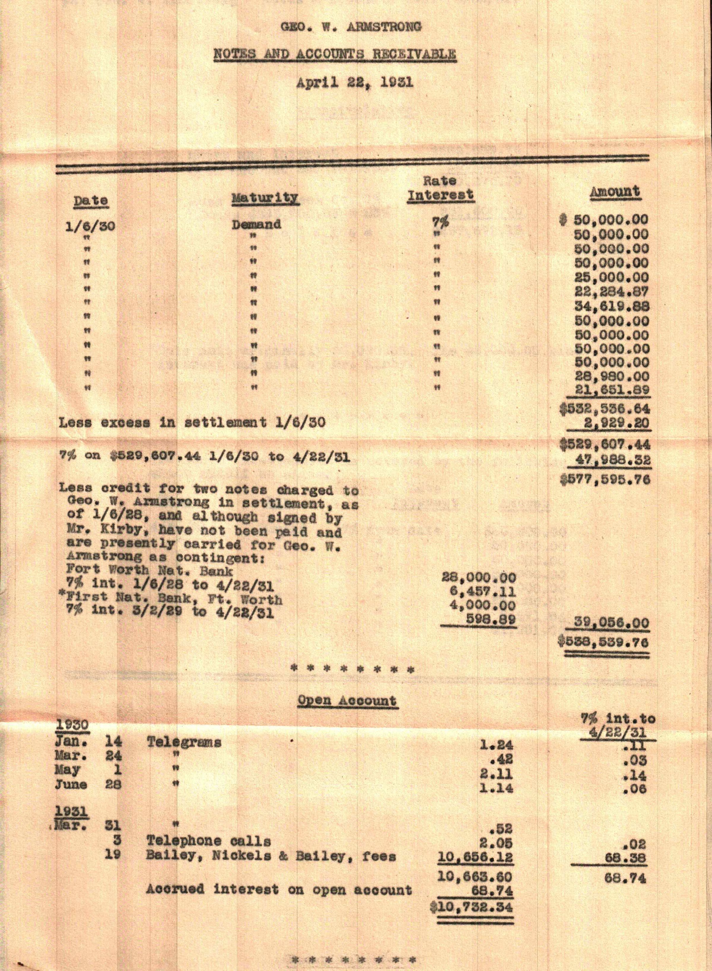 George Washington Armstrong Notes and Accounts Receivable, April 22, 1931Tags
