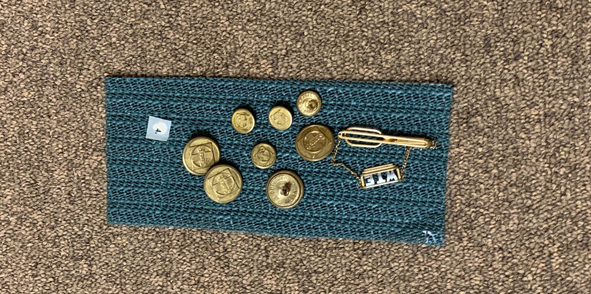 Buttons and tie chain worn by conductor during the era when passenger trains serviced Dolsbee dailyCollection