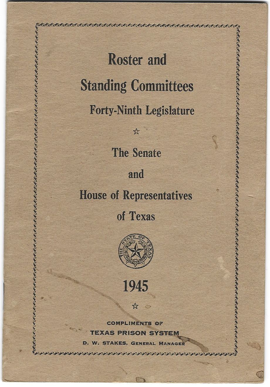 Roster and Standing Committees 49th Legislature - The Senate and House of Representatives of Texas 1945Tags