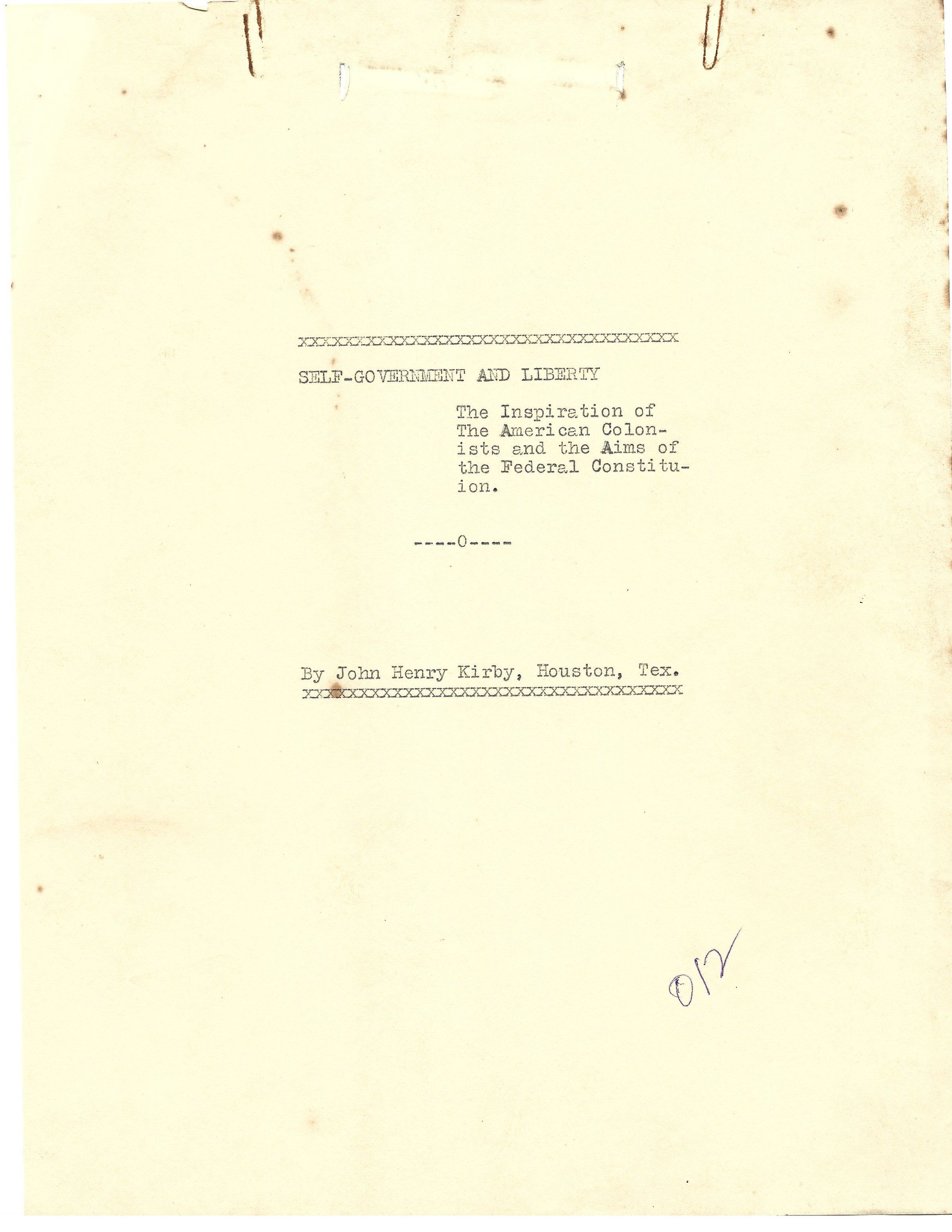 Book Draft by John Henry Kirby "Self-Government and Liberty"Tags