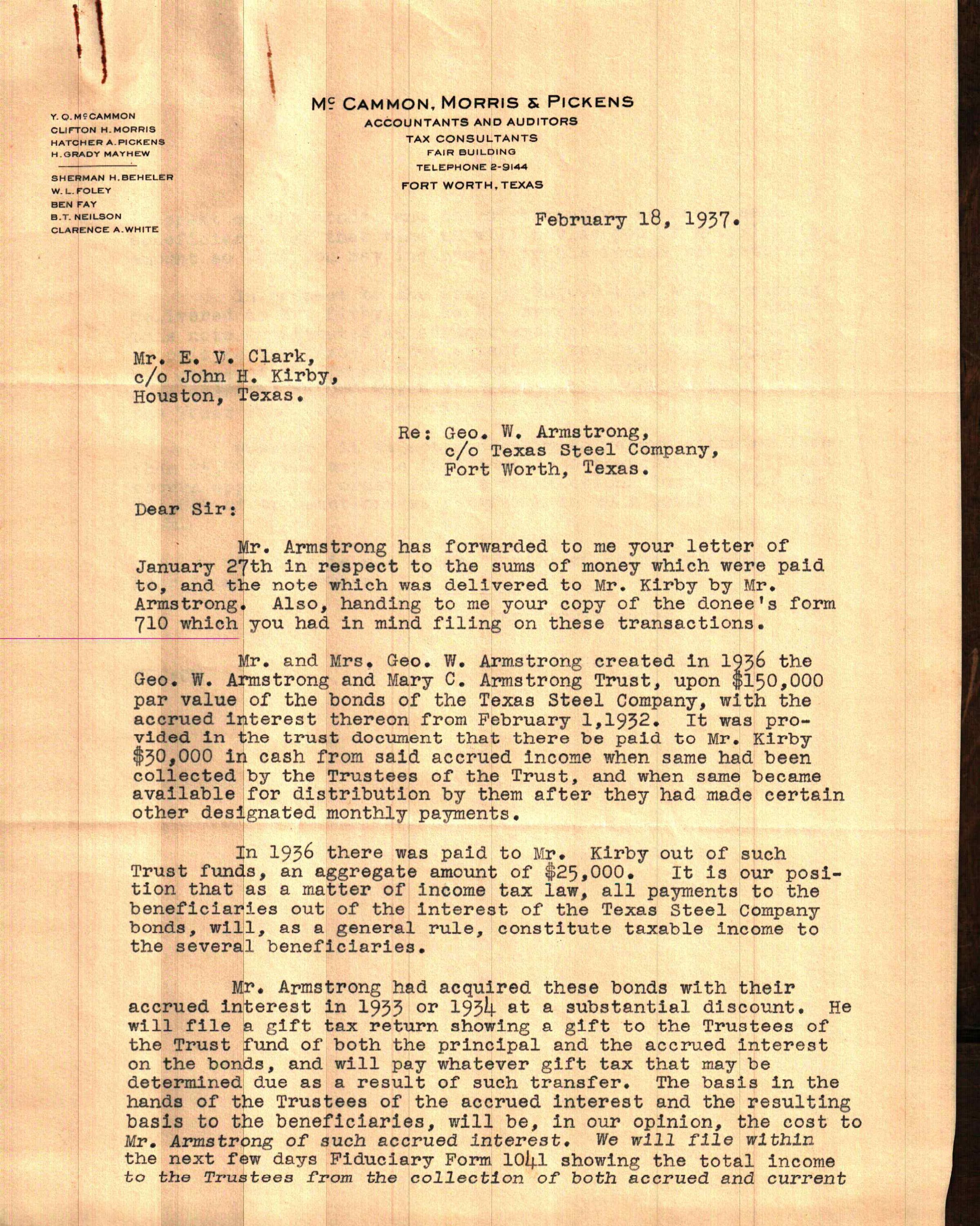 Letter to E V Clark from McCammon, Morris & Pickens February 18, 1937Tags
