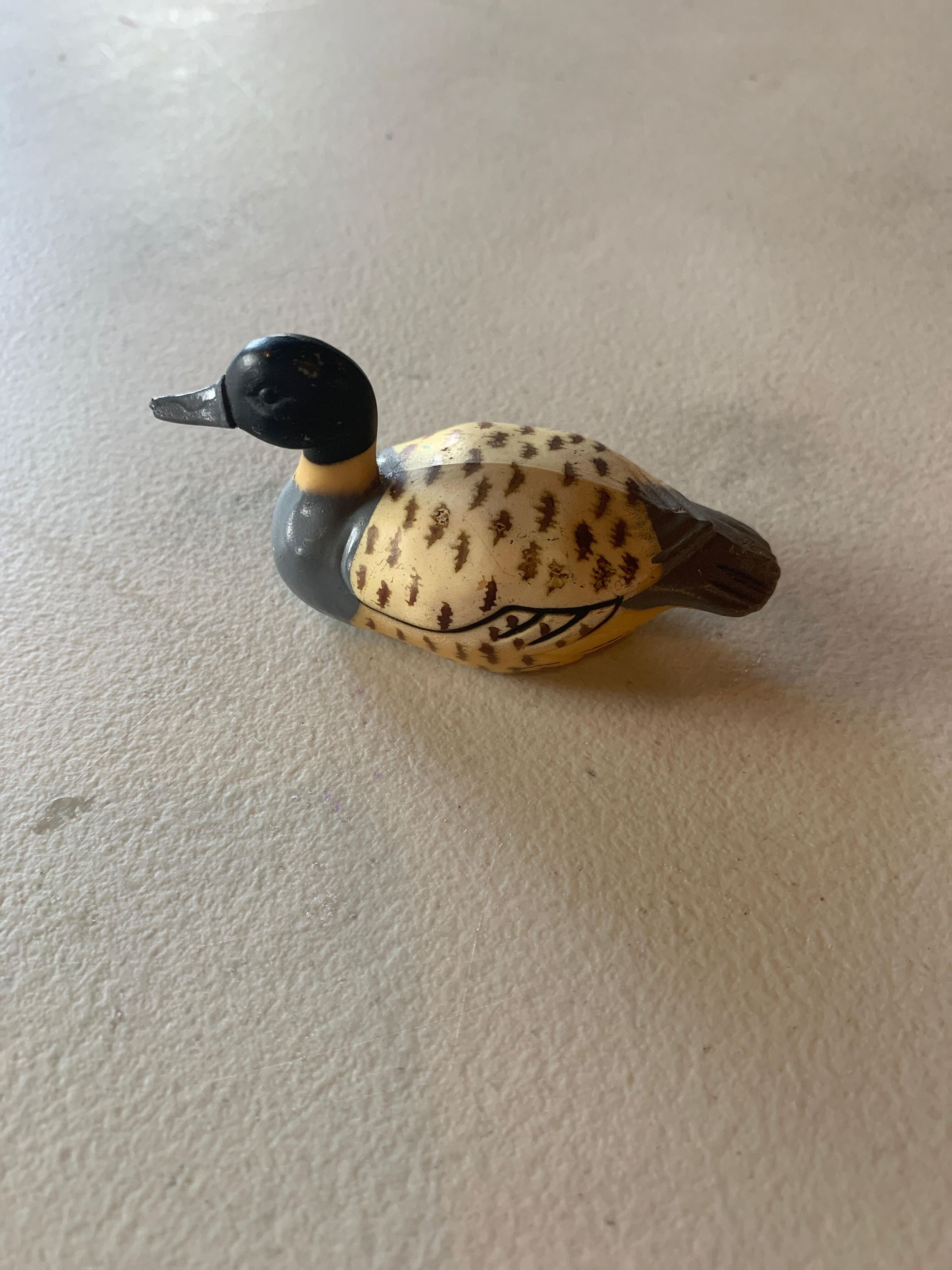 Dark head, gray chest and tail, white wings with brown spotsCollection