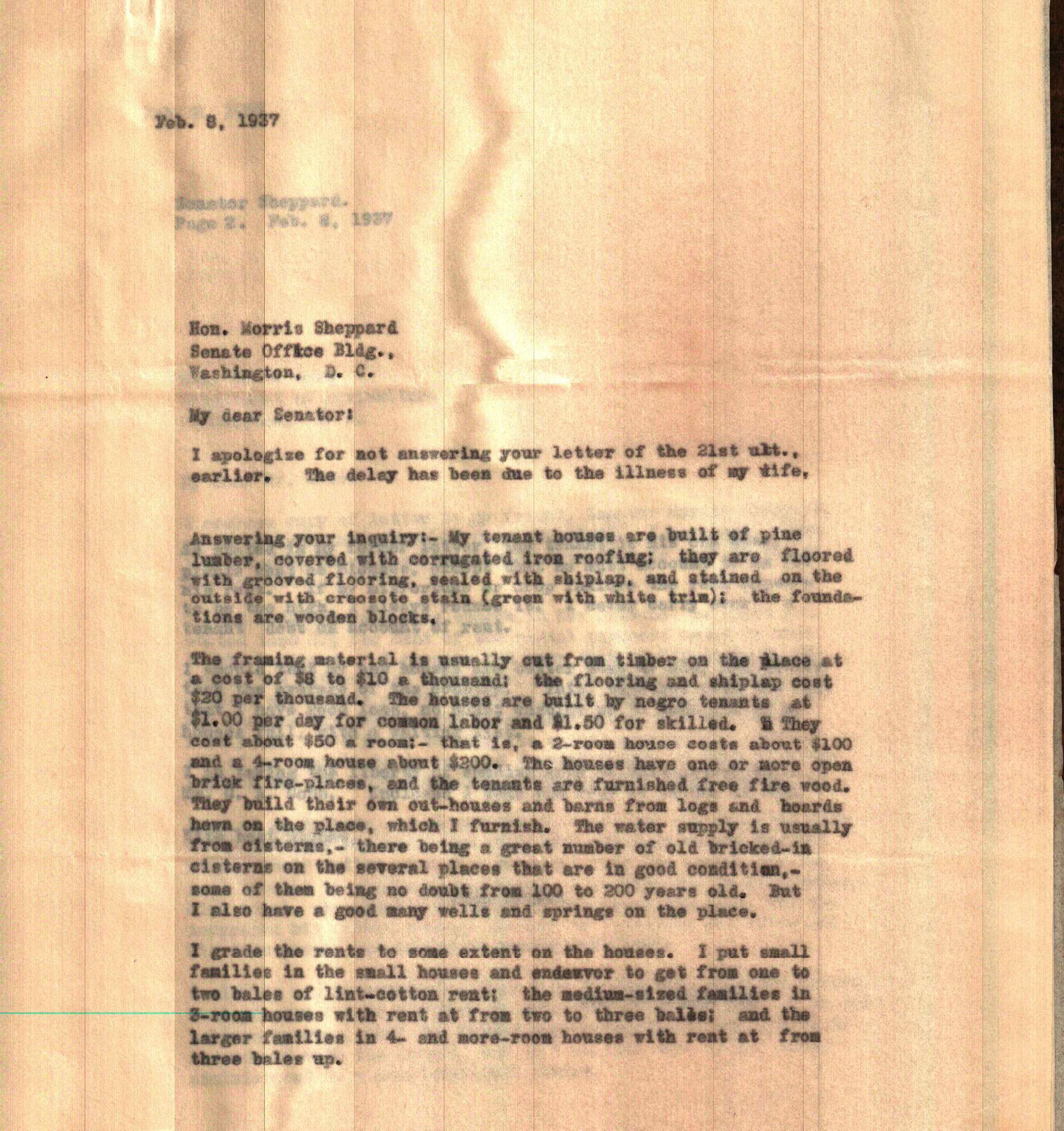 Letter to Senator Morris Shepperd from possibly KirbyTags