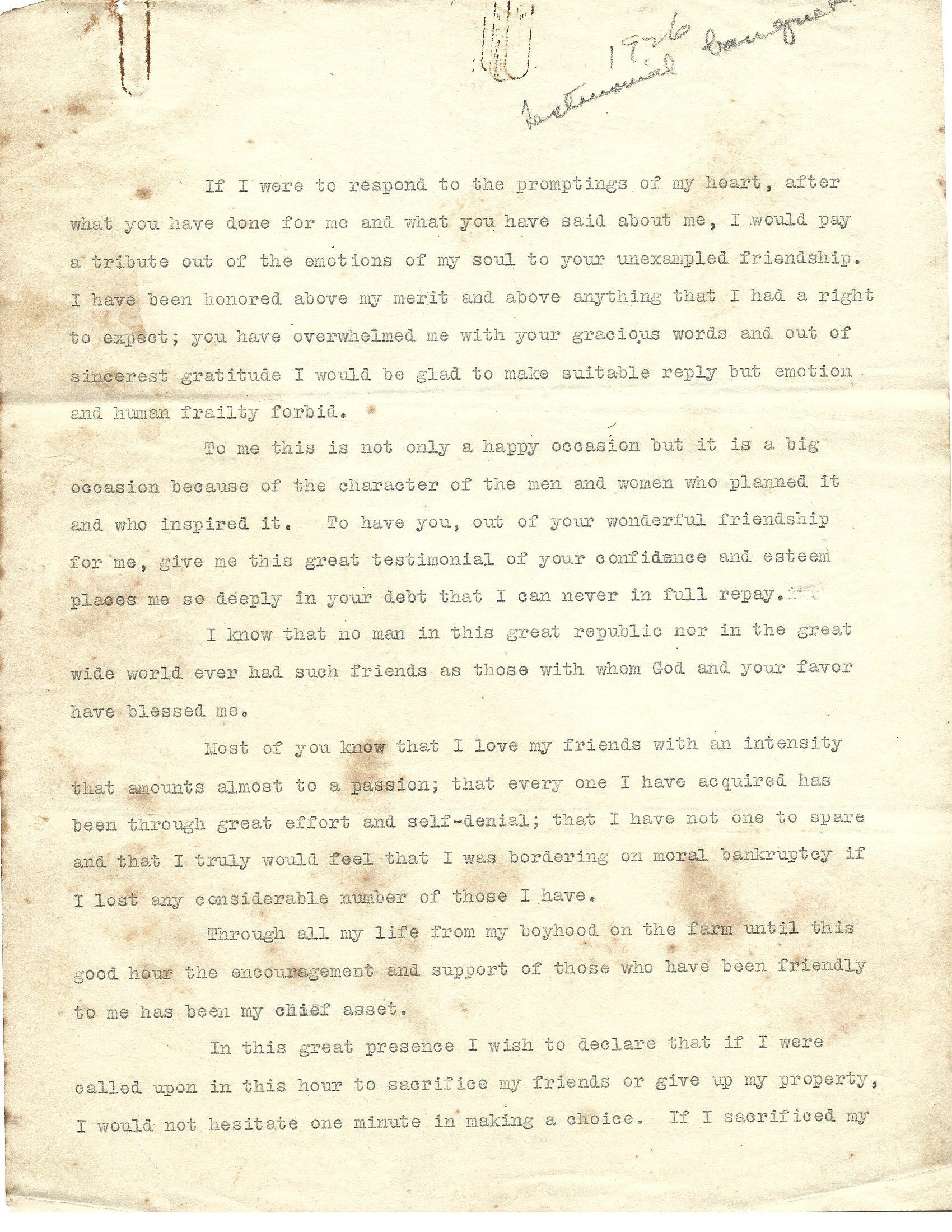 John H Kirby Speech at Testimonial Banquet in 1926Tags