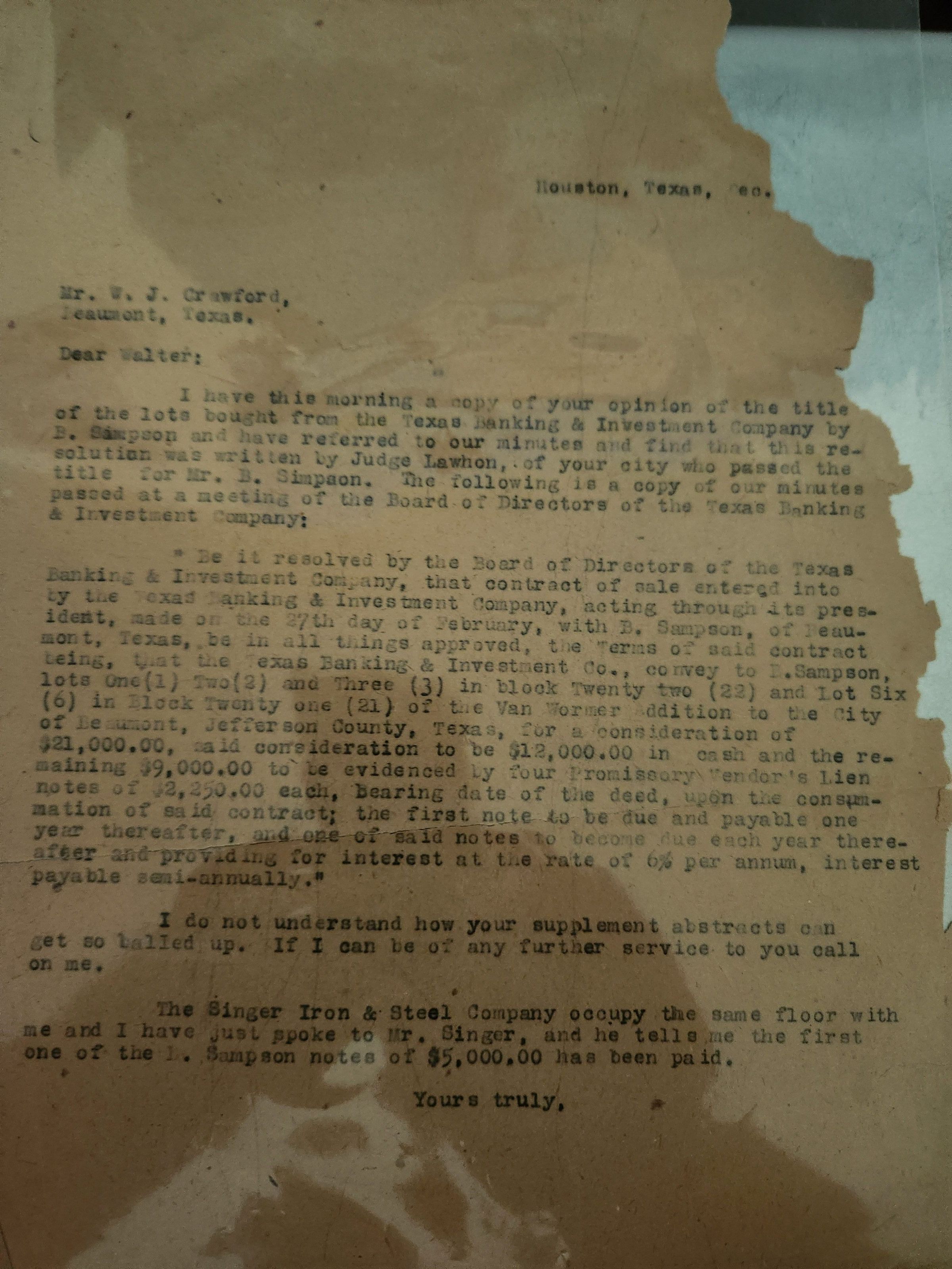 Letter from John Henry Kirby to Walter J Crawford dated December concerning Opinion of TitleTags