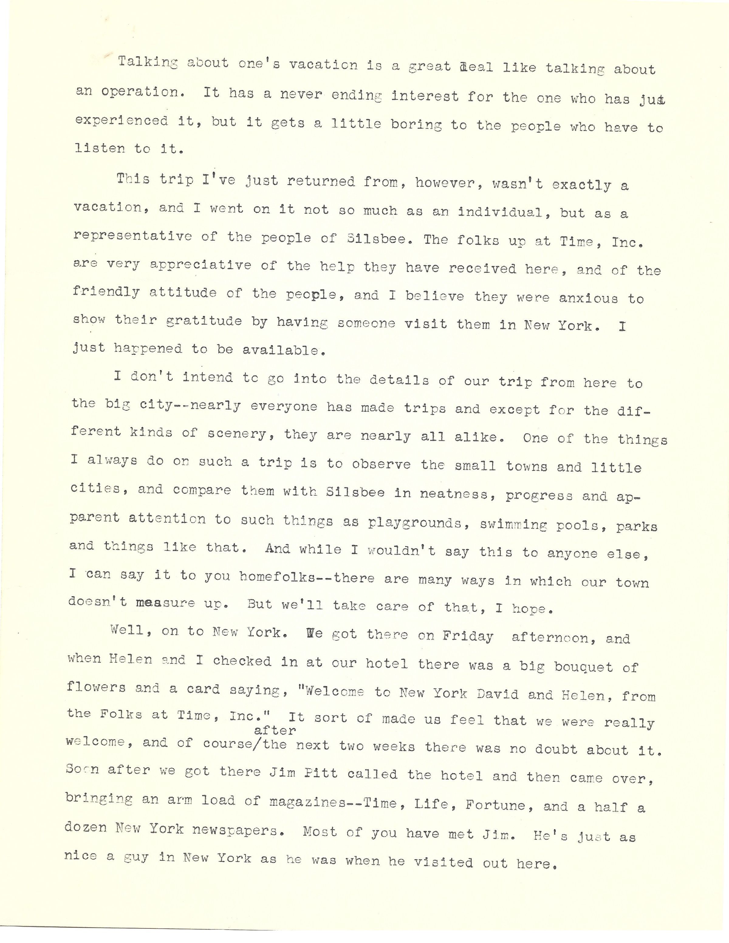 David Read, Speeches, Time Inc News Service, New York, Silsbee TexasCreated By