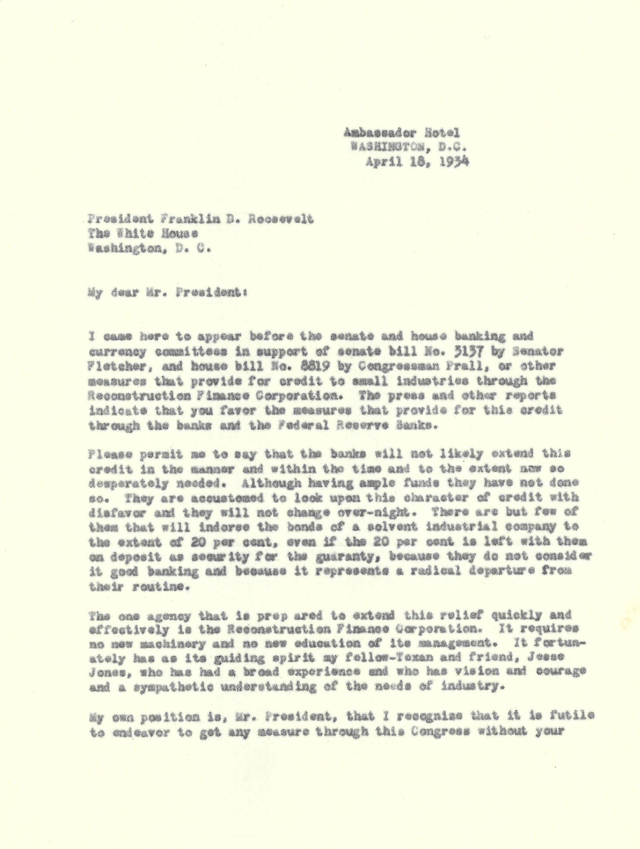 Letter to President Franklin D Roosevelt from George W Armstrong dated April 18, 1954Tags