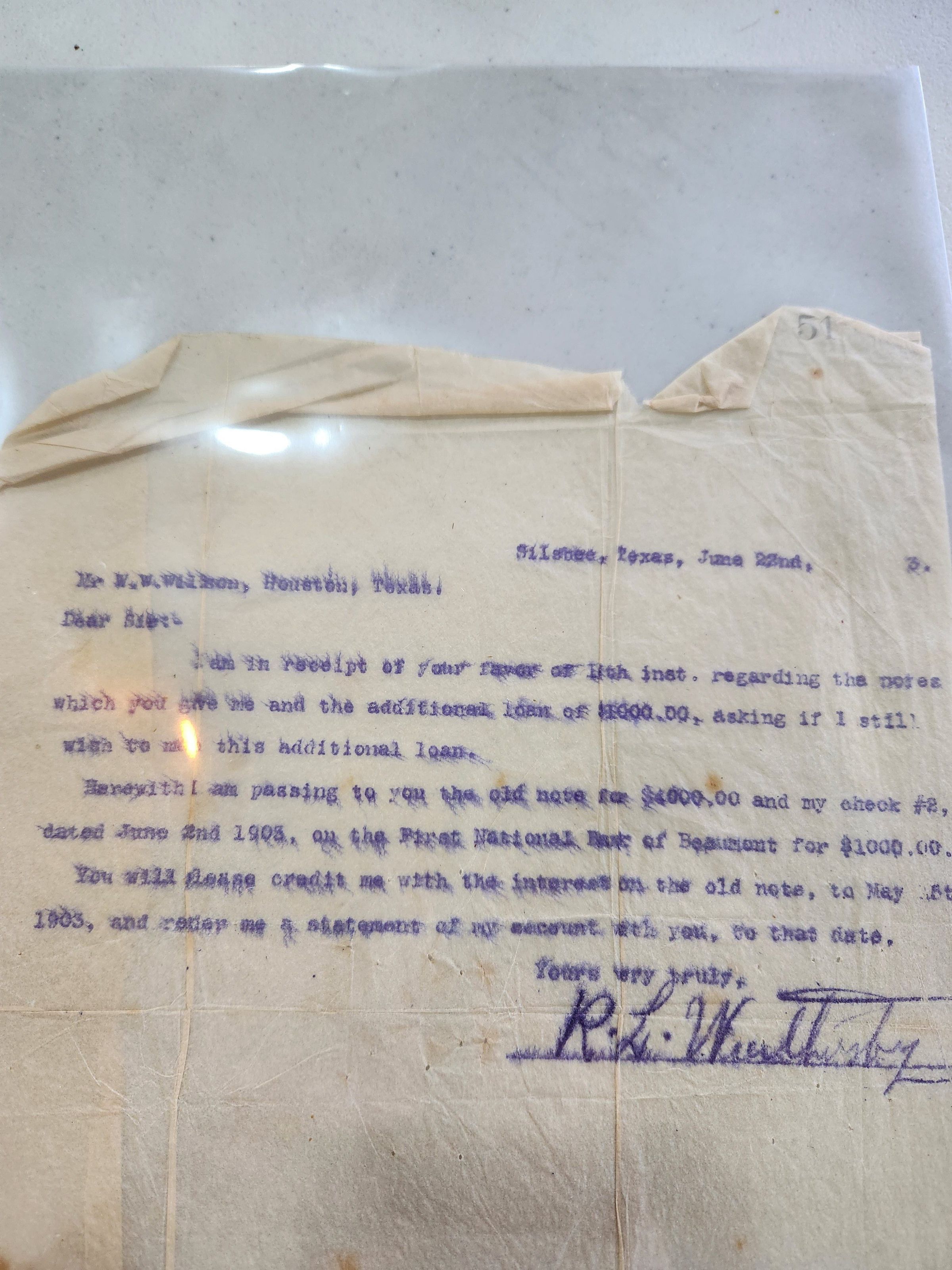 Letter from R L Weathersby to W W Wilson dated June 22, 1903