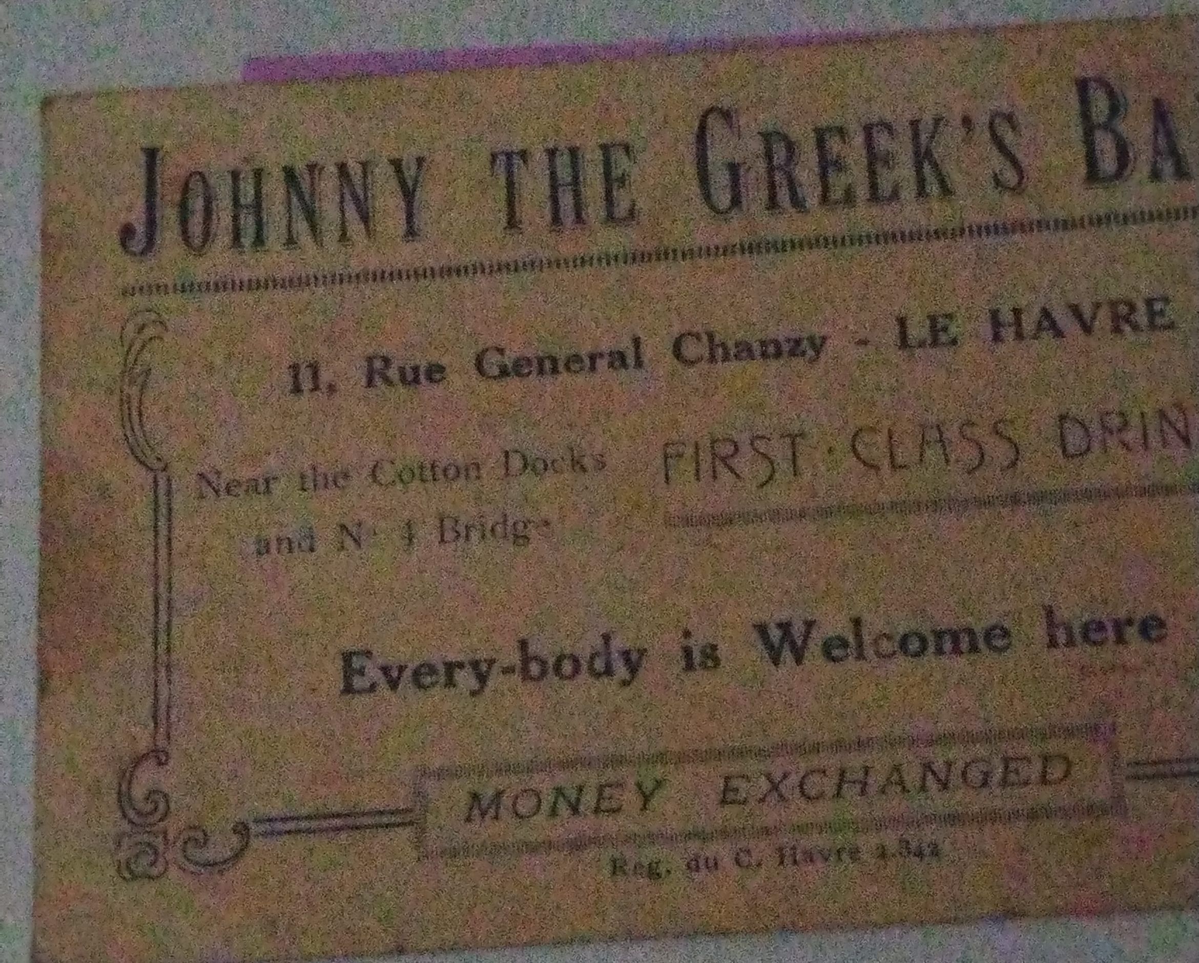 Business Card from "Johnny the Greek's Bar" - Rue General Chanzy -Le HavreTags