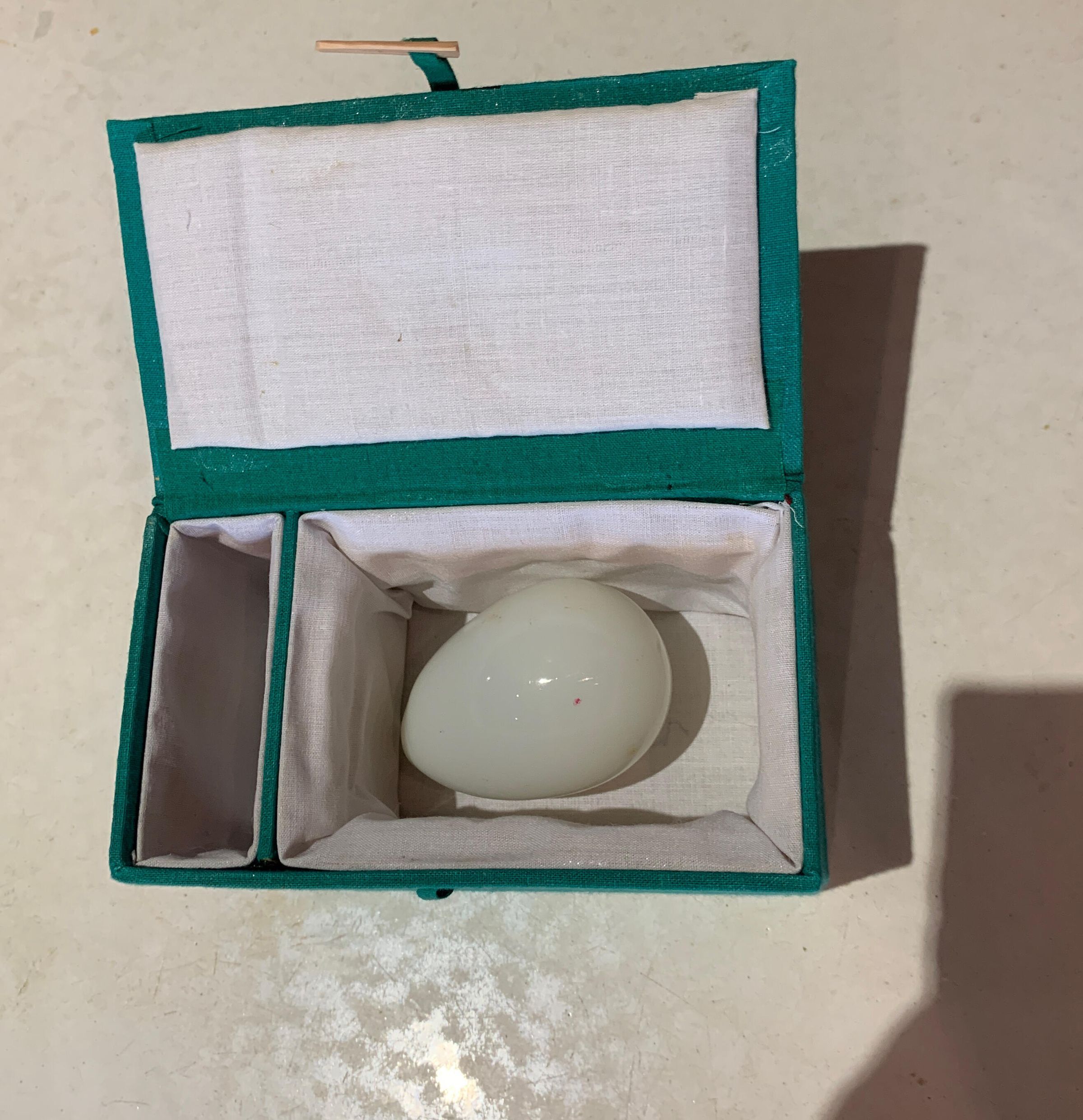 Glass nesting eggs were used from early 1900. They were used in chicken coops to help young hens sit on the eggs and nest.Cataloged By