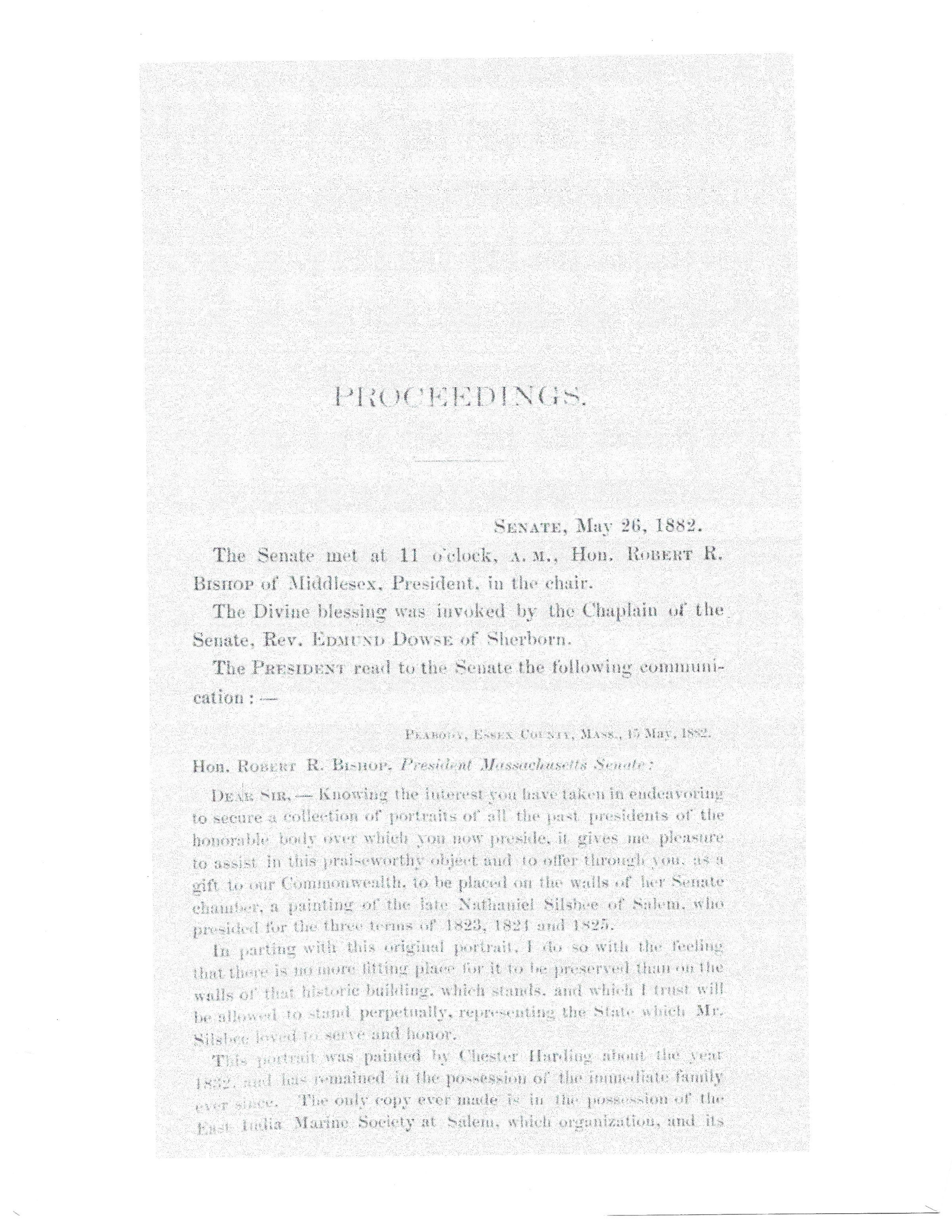 Senate Report of Proceedings on the Recption of the Portrait of Nathaniel Silsbee, State of Massachusetts dated May 26, 1882Tags