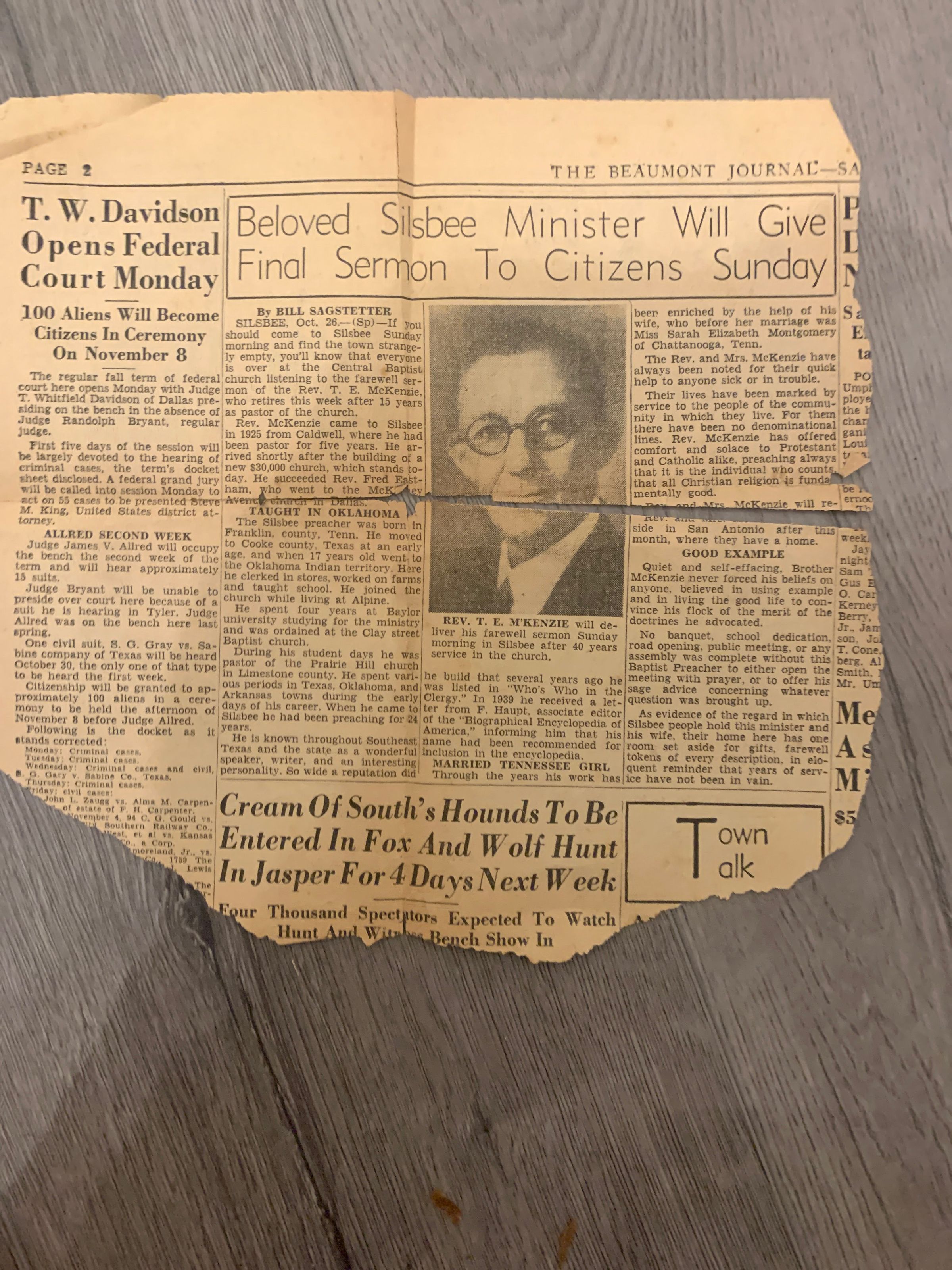 Silsbee Texas, T E McKenzie, MinisterDescription