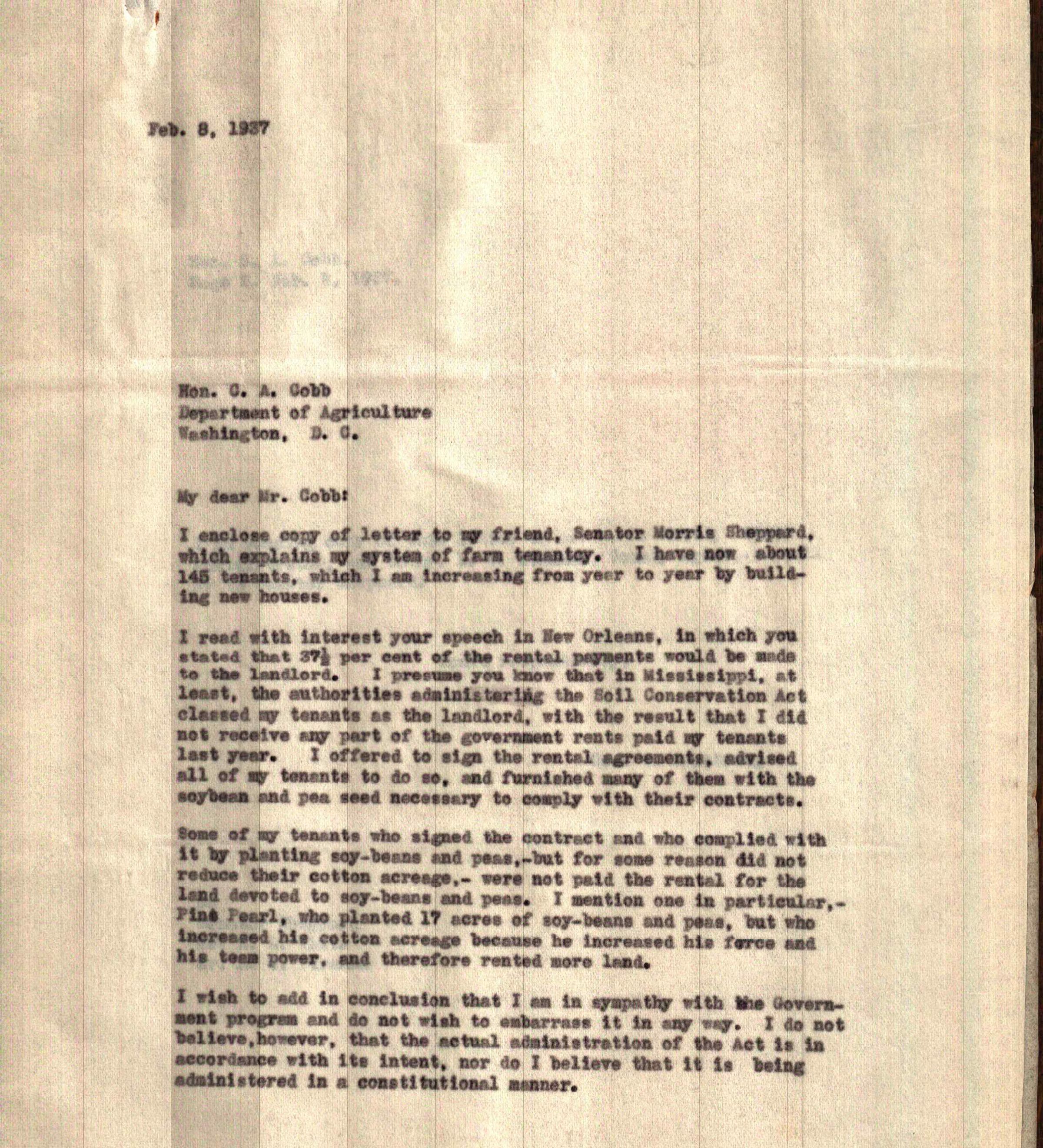 Letter to C A Cobb from George W Armstrong dated February 8,1937Tags