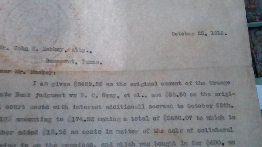 Letter to John W Mackey, Attorney, from John Henry Kirby dated October 28, 1916 concerning court settlementTags