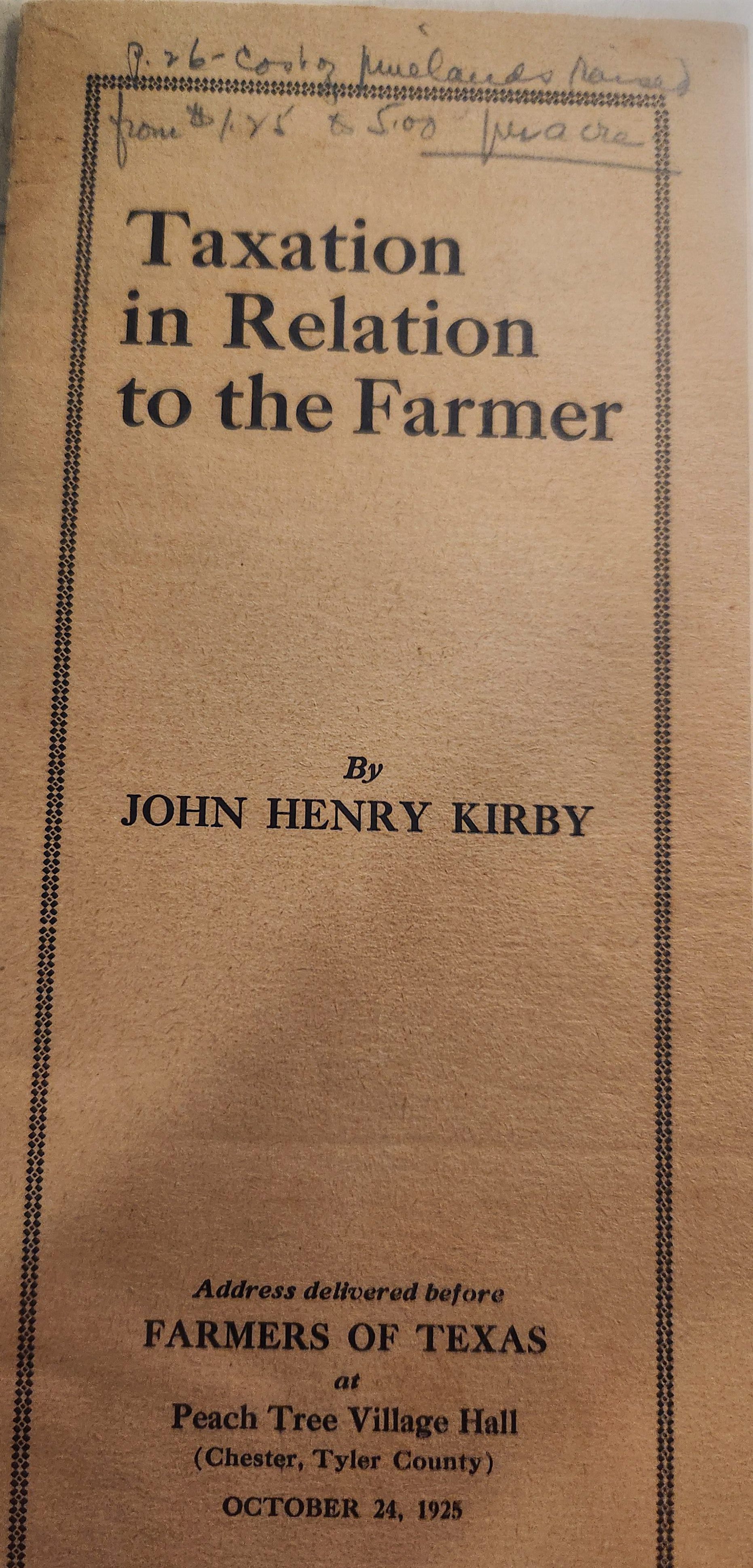 Taxation in Relation to the Farmer an address by John Henry Kirby to Farmers of Texas October 24, 1925Tags