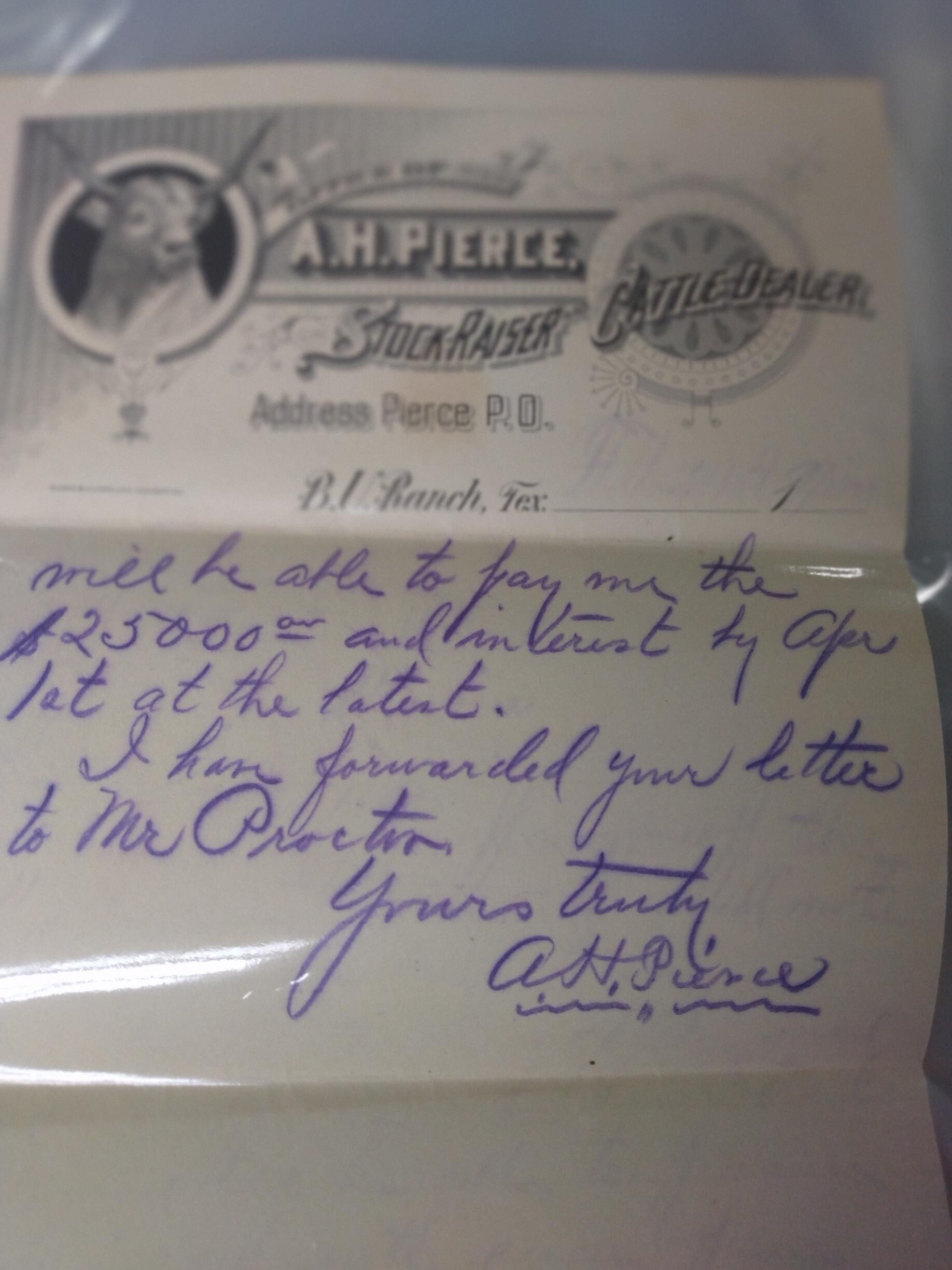 Letter from A H.Pierce to Mr. Kirby