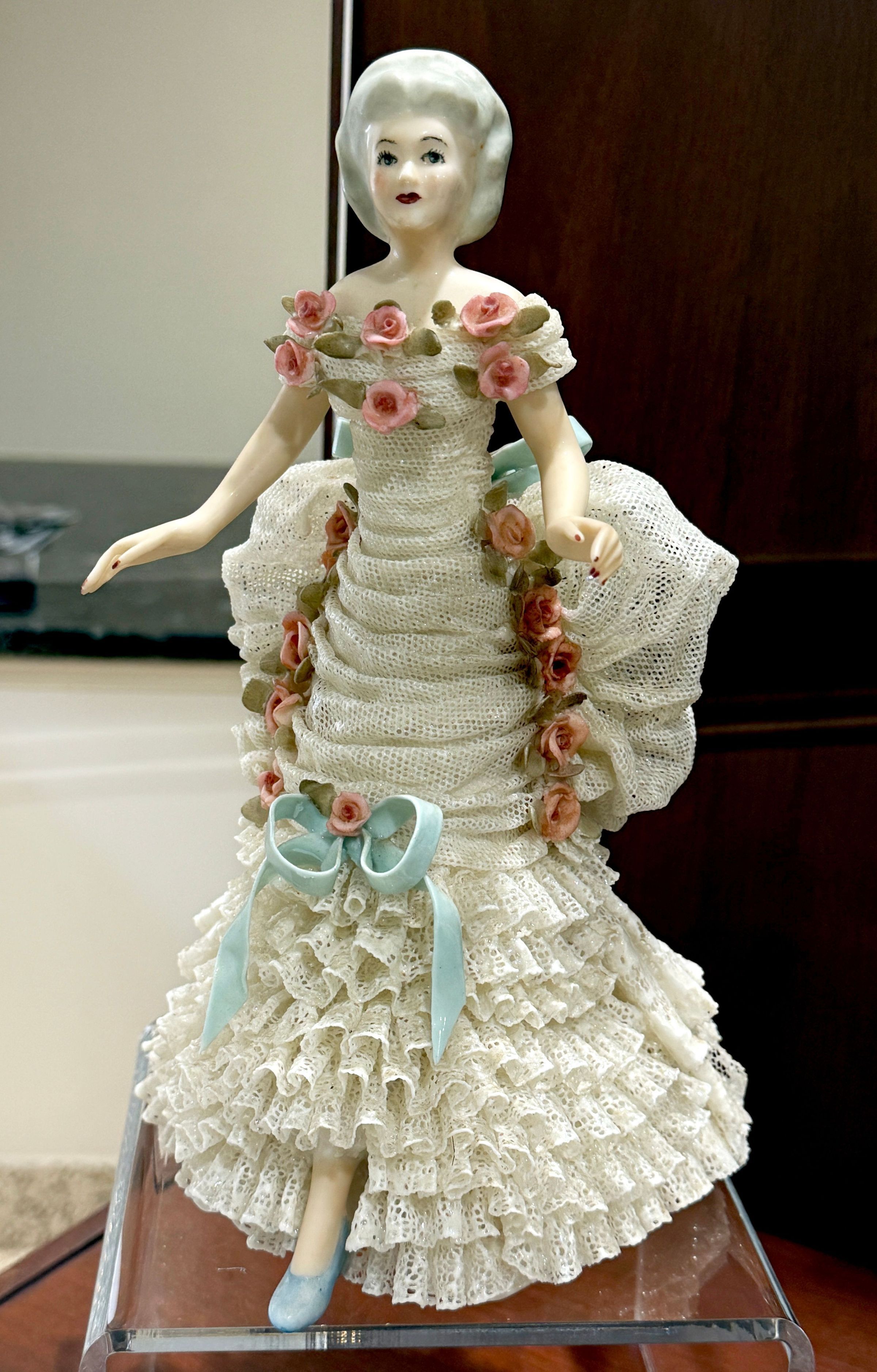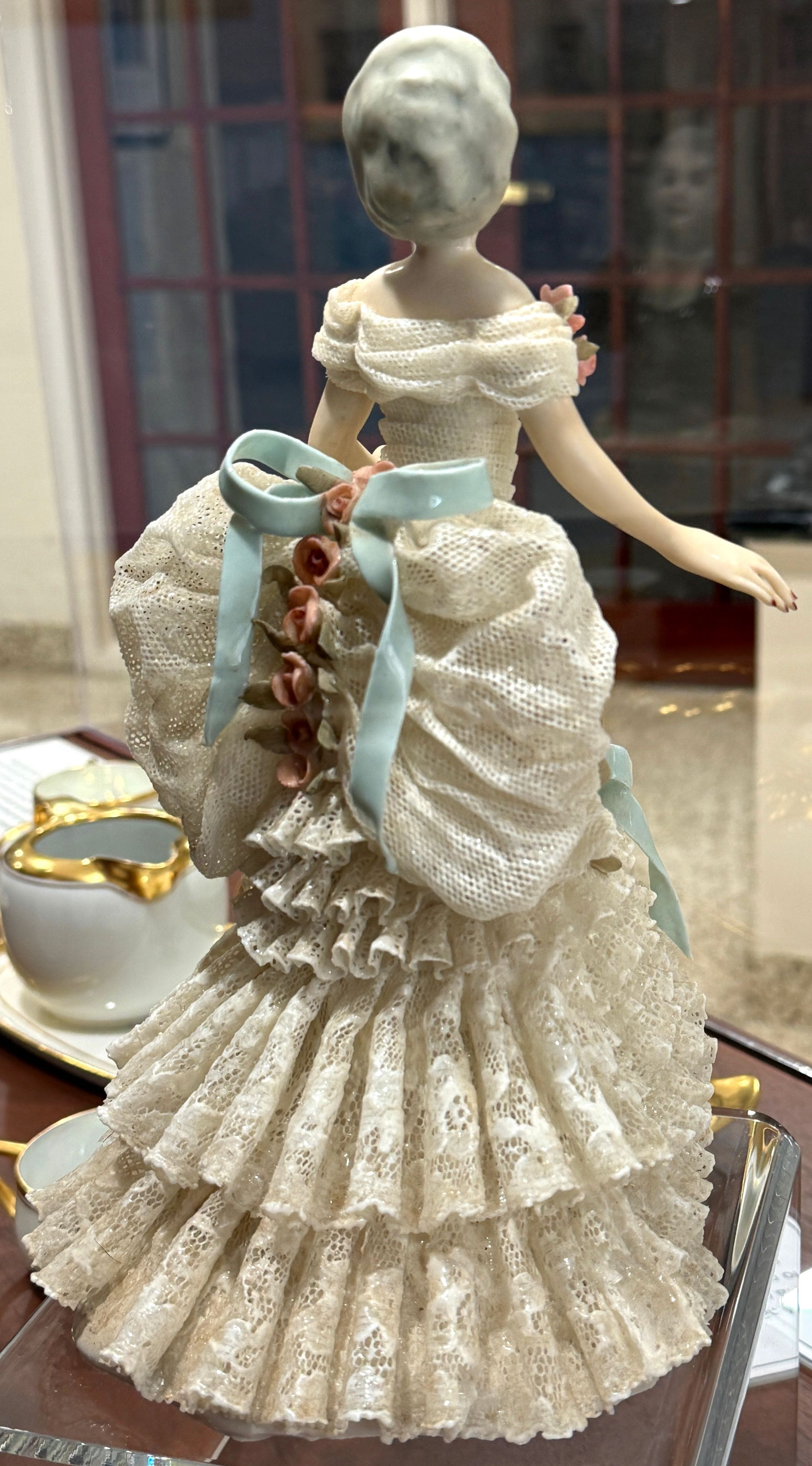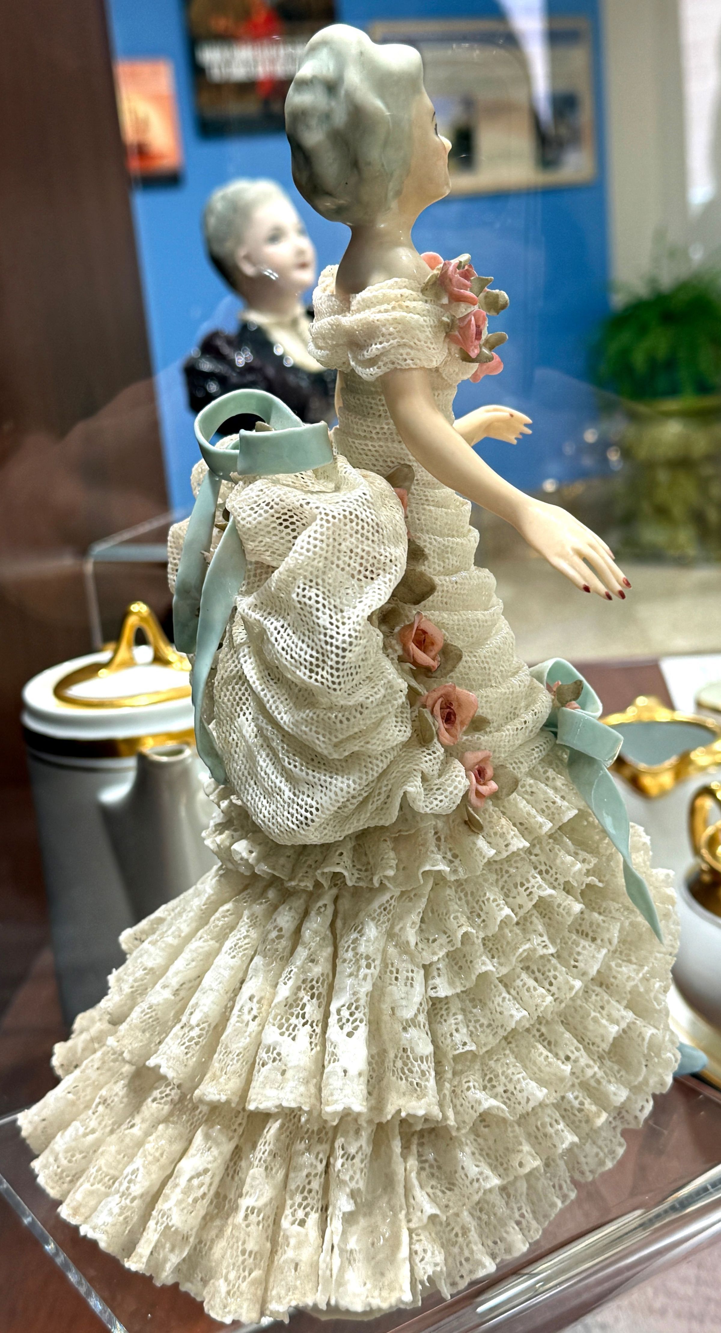 Figurines, Statues, Porcelain, Women, Dress, Roses, Lace