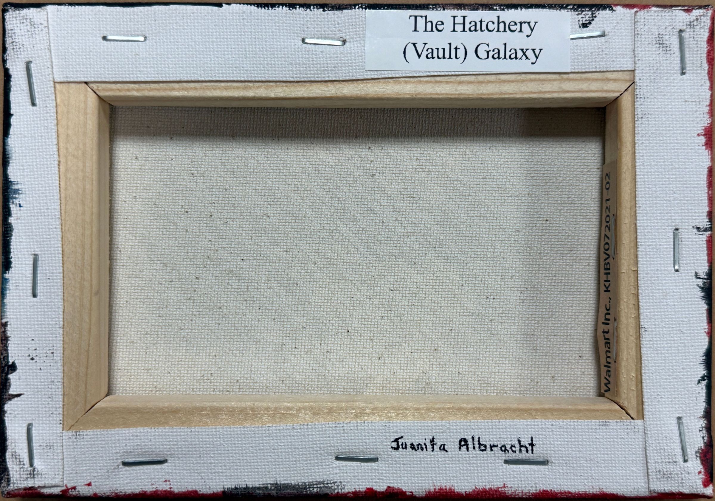 Back of canvas; top right