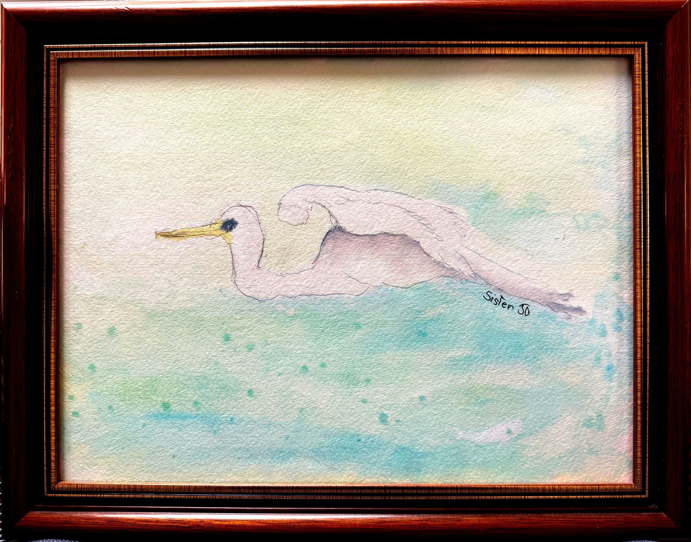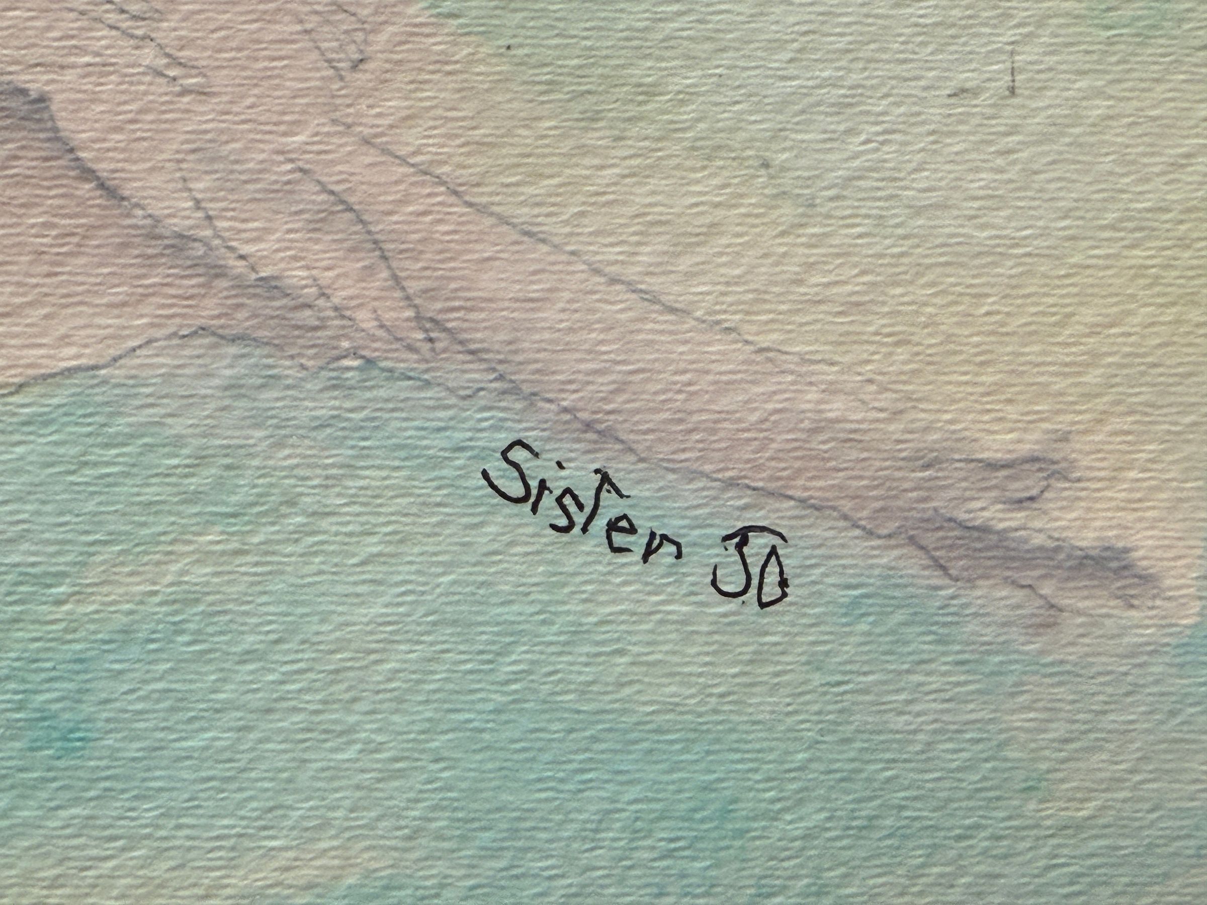 Starting with oils and later working in water colors, her paintings hang in numerous convents today. She remembers one of her first works, a mystical abstract-like oil painting in which the shape of a monk became apparent. An art critic in the convent was so impressed with its spirituality that the mother superior later chose it to be sent to a priest in Chicago, where it hangs today.
