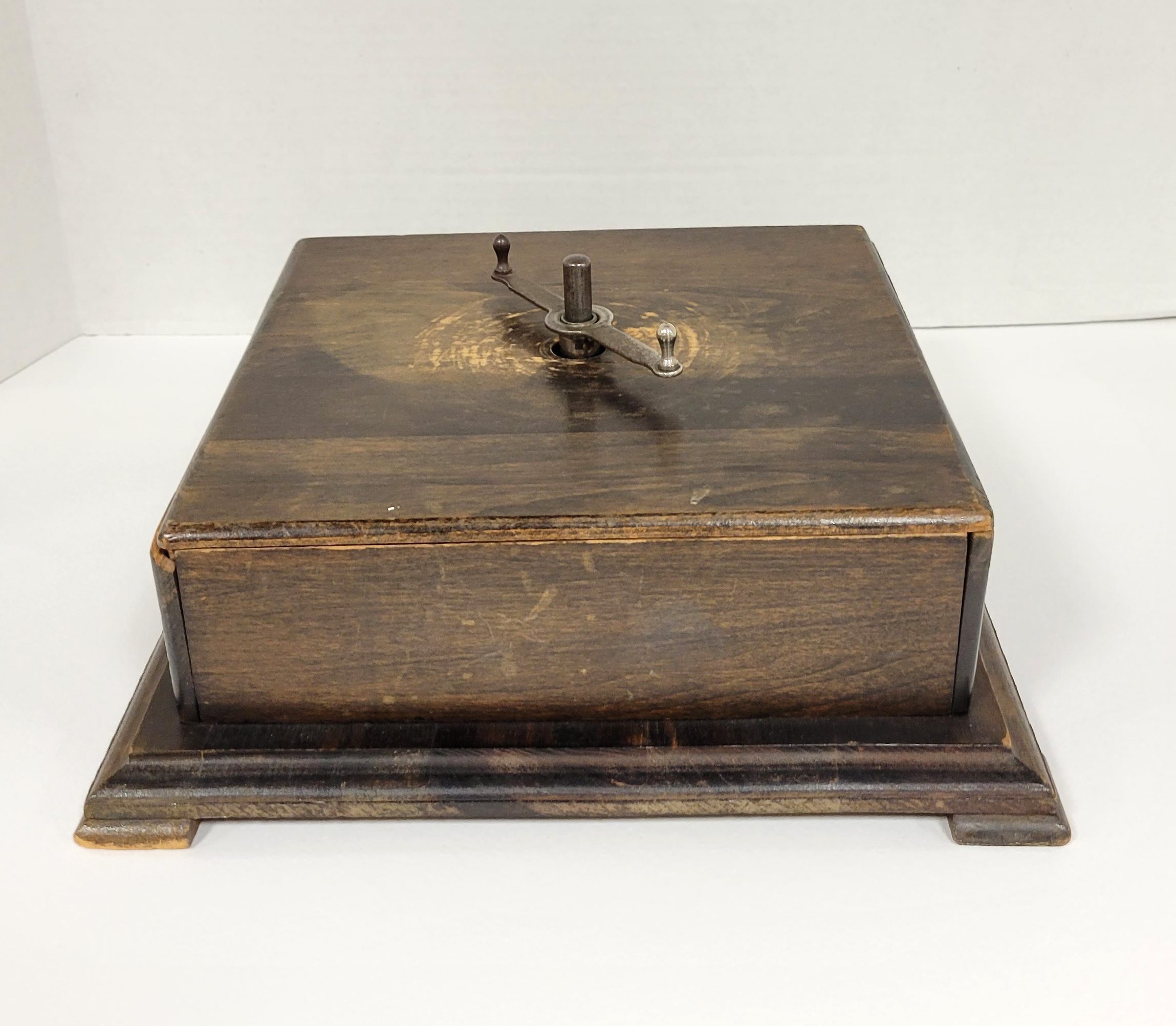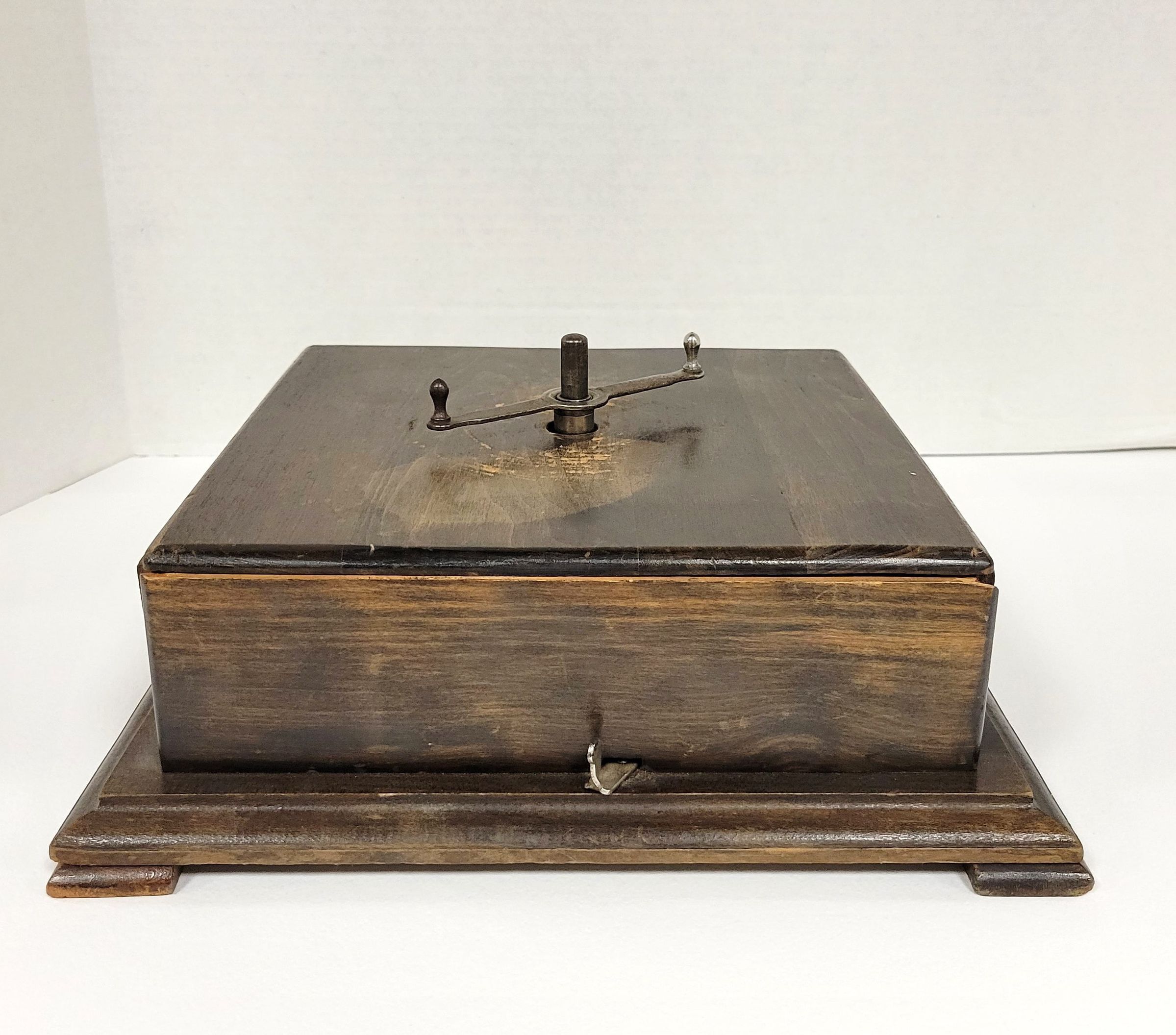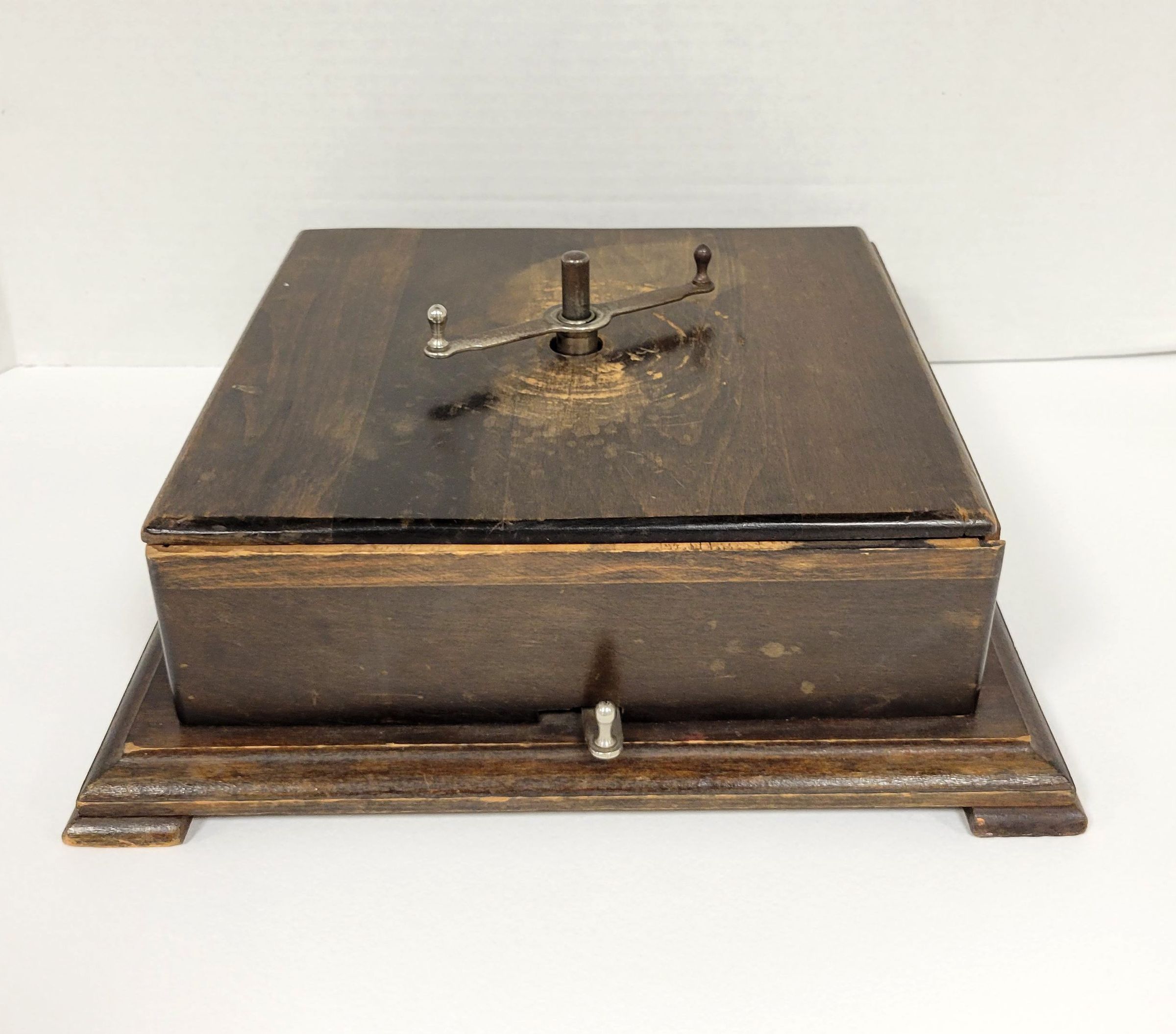 This music box was found in a closet in Santa Rosa Hospital San Antonio, Texas. According to Sister Mary Brian Sherry, CCVI, a Sister from Germany used to play it for patients in the Obstetrics Department around the 1940's. Ornamental pieces are missing.Research Type
