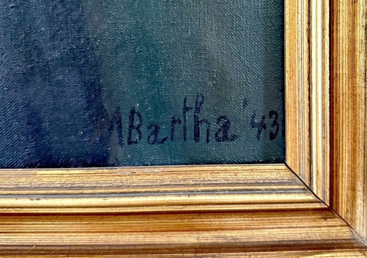 Madame Maria Bartha (1885 - 1973) nació como Alice Maria Blau el 12 o 13 de enero de 1885 en Nagykanizsa, Nagykanizsai, (Nagy-Knizsa) Condado de Zala, Hungría. Aunque se desconocen las fechas, afirmó haberse licenciado en la Universidad de París y en la Sorbona, estudió en la Academia Julien de París, estudió con Philip de László en Viena y París, y con un profesor Marino en Italia. Bartha llegó a Nueva York el 1 de mayo de 1939 en el S.S. Normandie, con la intención inicial de permanecer en Estados Unidos seis meses. Como informó el Duluth News Tribune el 29 de septiembre de 1946, "Cuando llegó a este país antes de que estallara la Segunda Guerra Mundial para visitar a unos amigos, el artista quedó cautivado por América y decidió quedarse aquí. Sería demasiado triste volver ahora', dijo". Bartha, cuyo apellido de nacimiento era Blau antes de casarse con Maxmilian Stein en 1907, era de ascendencia judía húngara. De hecho, su traslado a Estados Unidos y el cambio de nombre sirvieron para mantenerla a salvo de la persecución durante la Segunda Guerra Mundial. A su llegada, Bartha se integró rápidamente en la escena artística de Nueva York. Realizó numerosos retratos por encargo y participó en varias exposiciones, entre ellas las de la Alma Reed Gallery y la Bonestell Gallery. En 1942, el Departamento de Guerra de Estados Unidos encargó a Bartha un retrato del general Douglas MacArthur para el Texas Military Institute de San Antonio, Texas, alma mater de MacArthur. En otoño de 1942, Bartha entró a formar parte del profesorado del Departamento de Arte del Incarnate Word College. En 1943, pintó siete cuadros para las Hermanas de la Caridad del Verbo Encarnado de sus fundadoras y de las Superioras Generales de la Congregación hasta 1941. En 1946, Bartha se incorporó al profesorado del College of St. Scholastica de Duluth, Minnesota. Entre 1948 y 1949 pintó un mural para la biblioteca del colegio que representaba a las Hermanas Benedictinas y sus actividades. Scholastica al final del curso académico 1950-51 para trasladarse a Houston, Texas, donde pasaría el resto de su vida. Bartha era una retratista muy solicitada en Houston. Tenía un estudio en su casa, donde pintaba por encargo para numerosos miembros de la alta sociedad de Houston. También fue miembro de la Liga de Arte de Houston y expuso sus obras en la Liga de Arte, el Museo de Bellas Artes de Houston y la Junior League de Houston. Bartha viajó con frecuencia durante toda su vida y pasó casi todos los veranos en Europa. Murió el 22 de febrero de 1973 en Houston a causa de una neumonía provocada por un derrame cerebral.