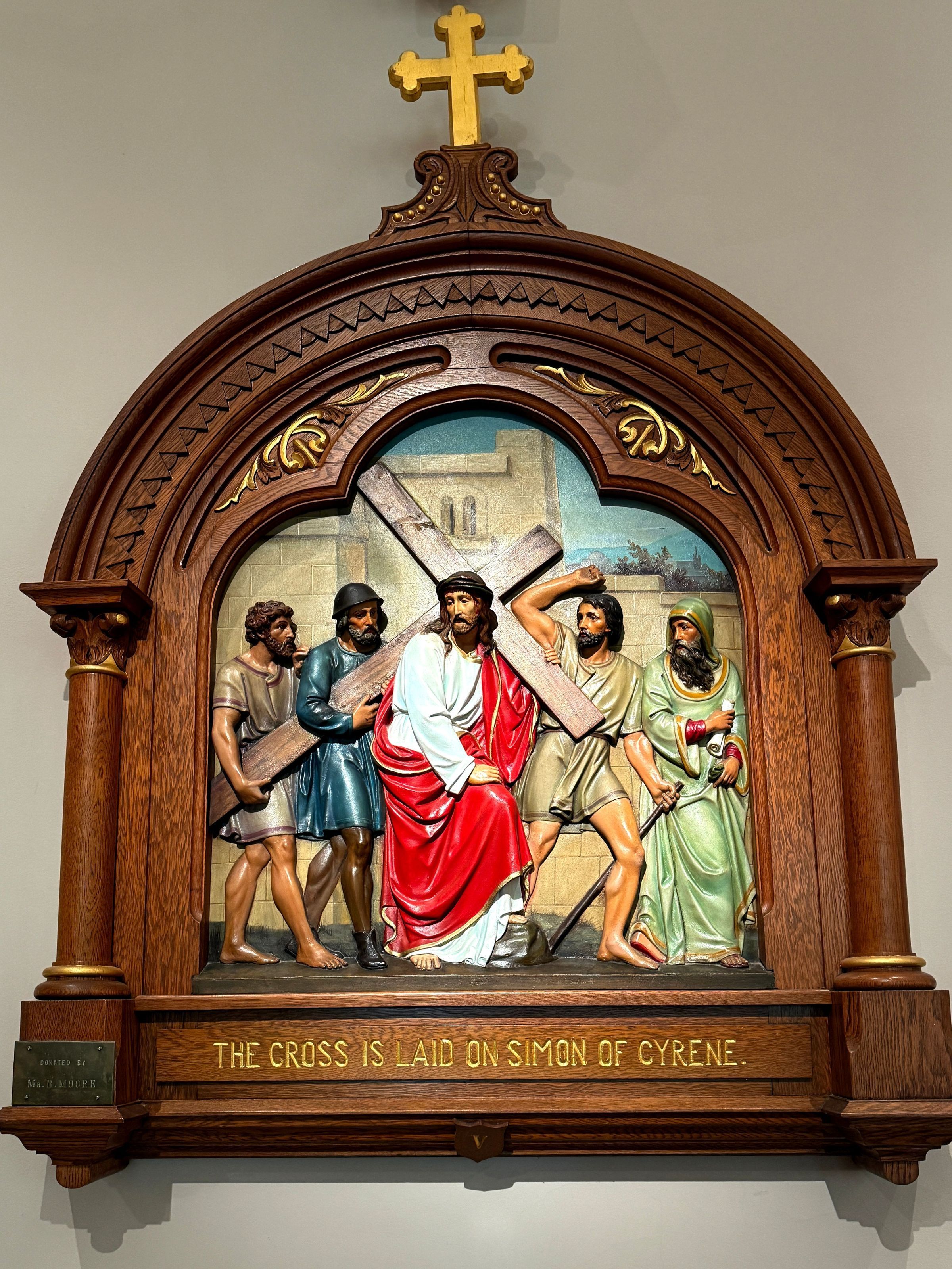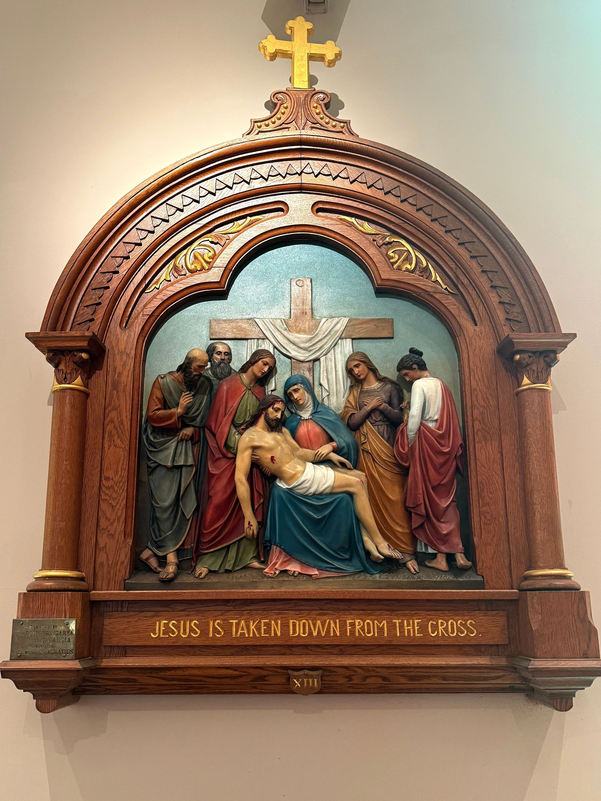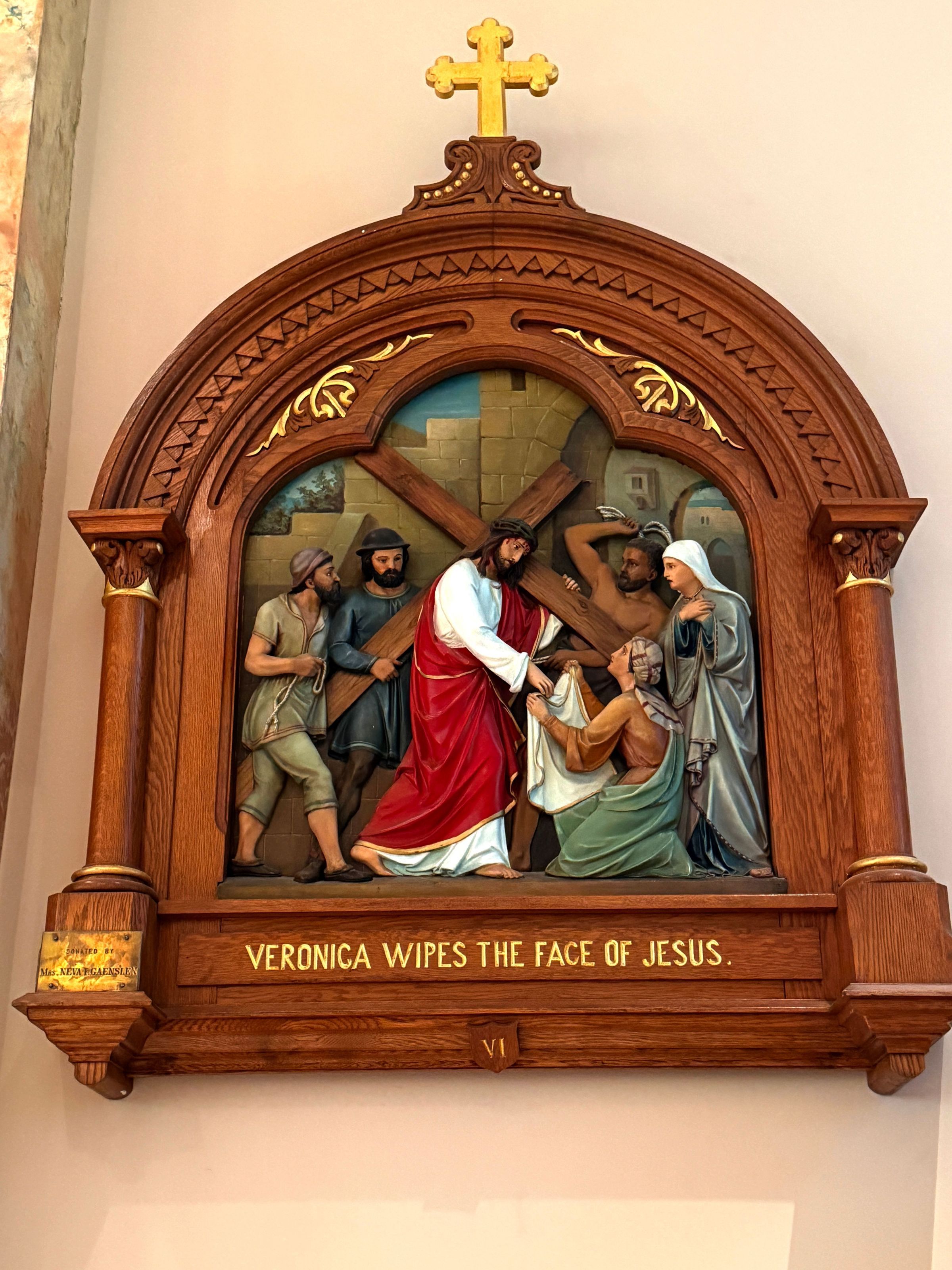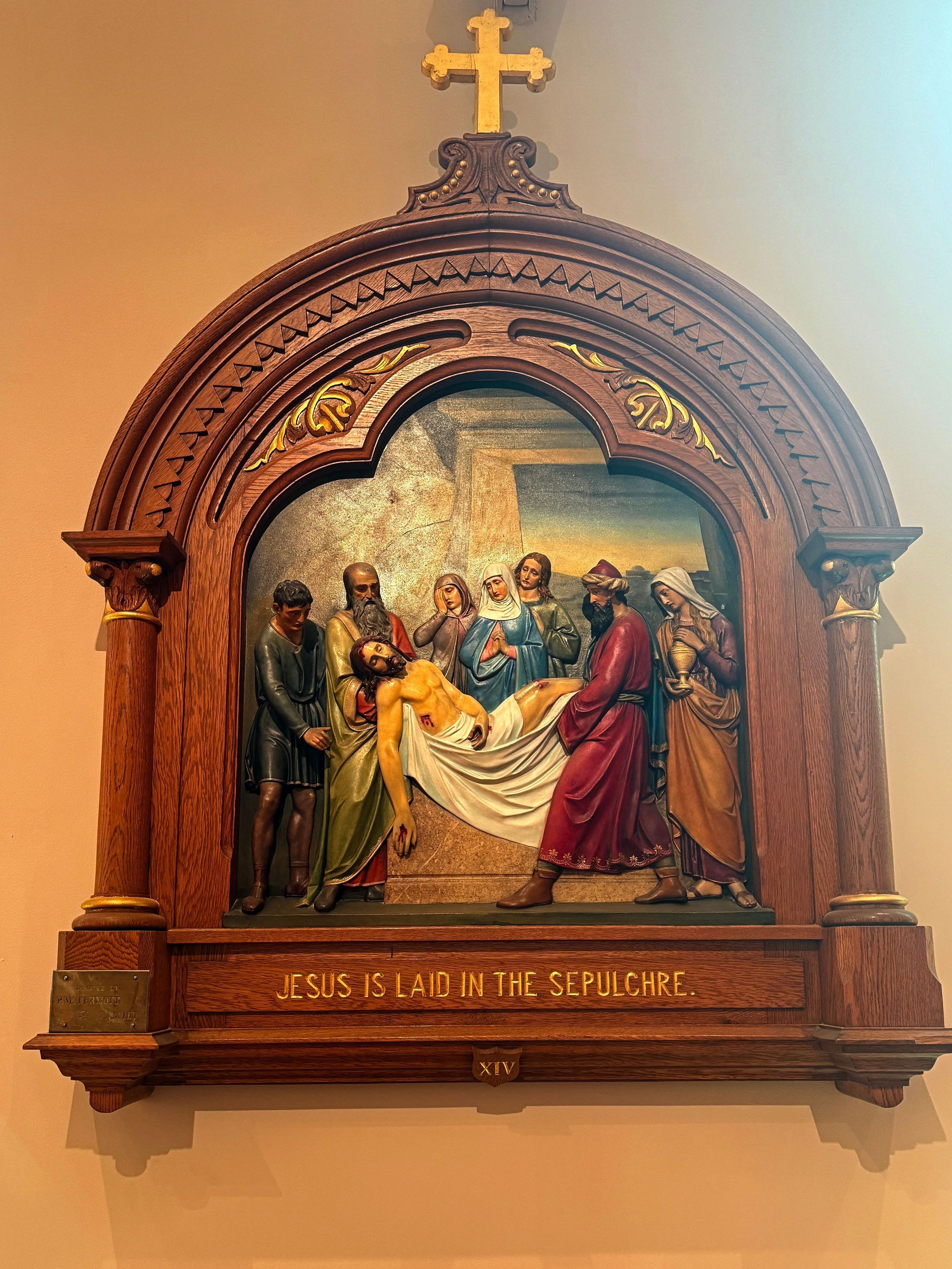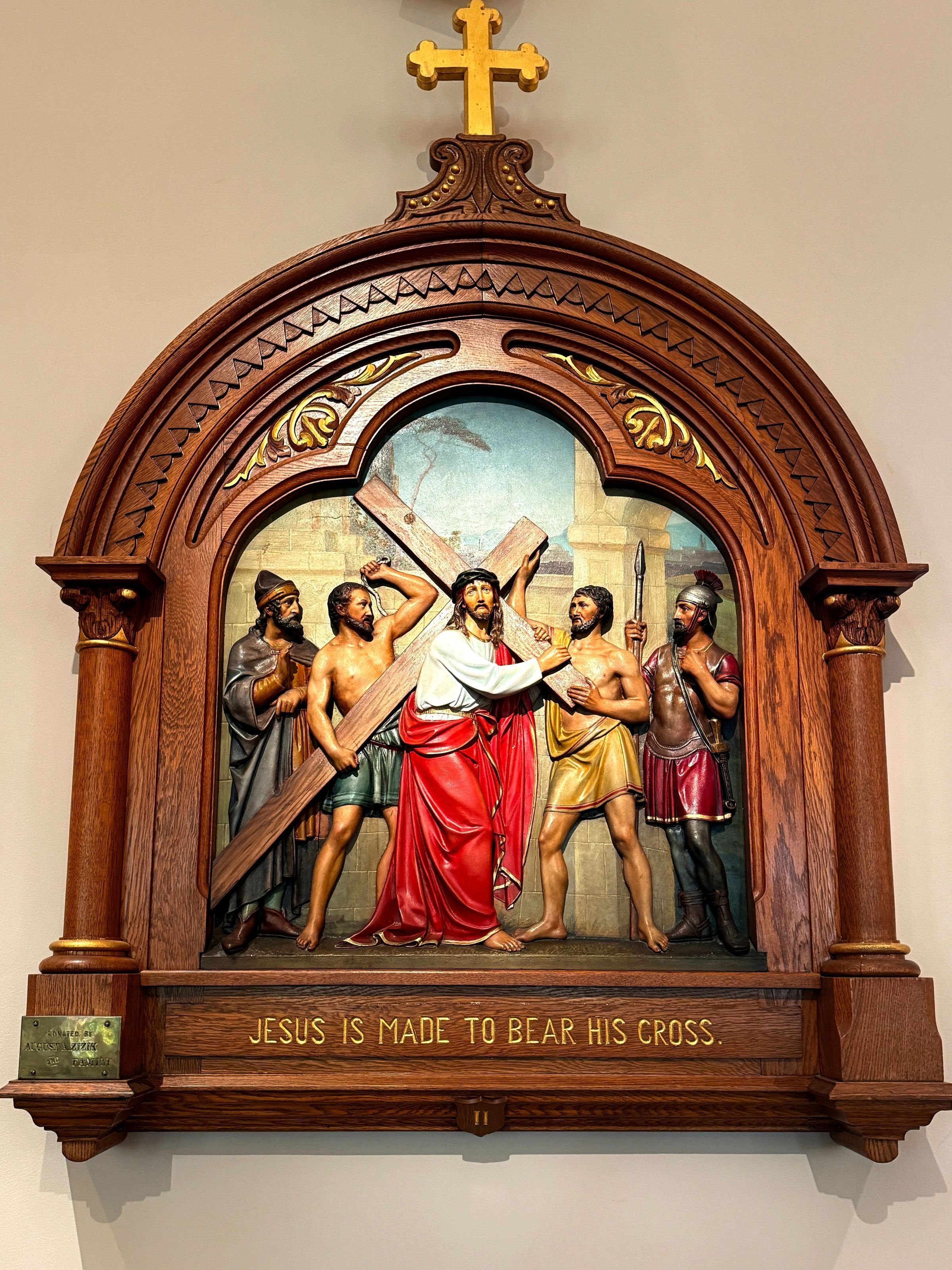 Las estaciones del Vía Crucis son una serie de imágenes de Jesucristo a lo largo del día de su crucifixión. Sirven como herramienta contemplativa que permite a los fieles realizar una peregrinación espiritual meditativa a través de la Pasión de Cristo. Las Hermanas CCVI meditaban diariamente sobre estas estaciones en la capilla.Type of Sculpture