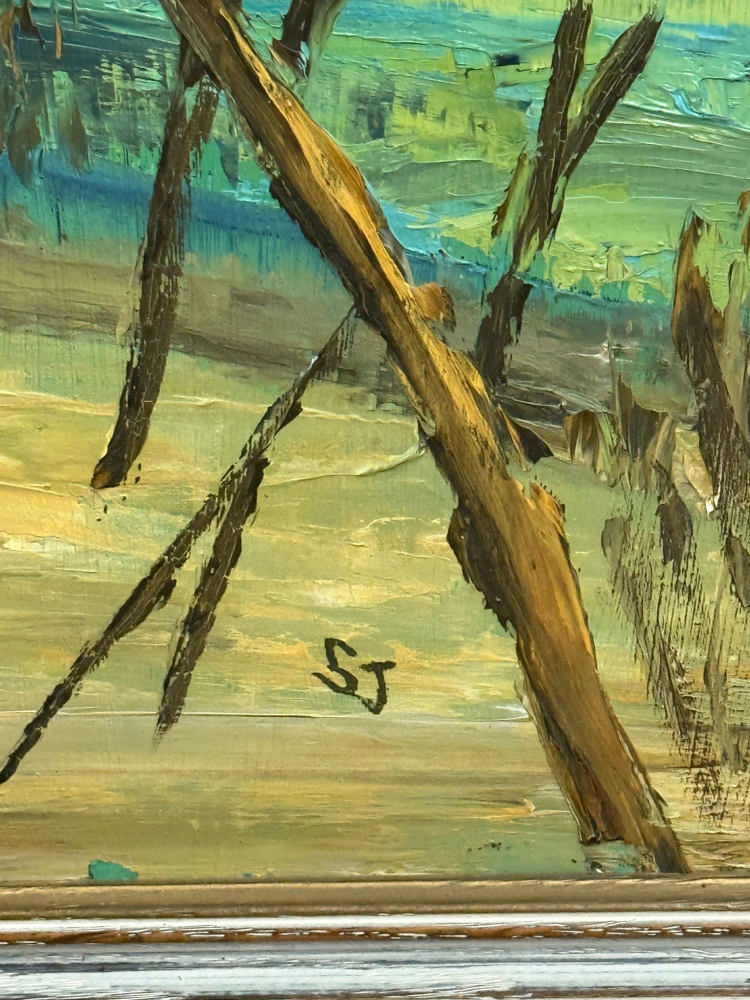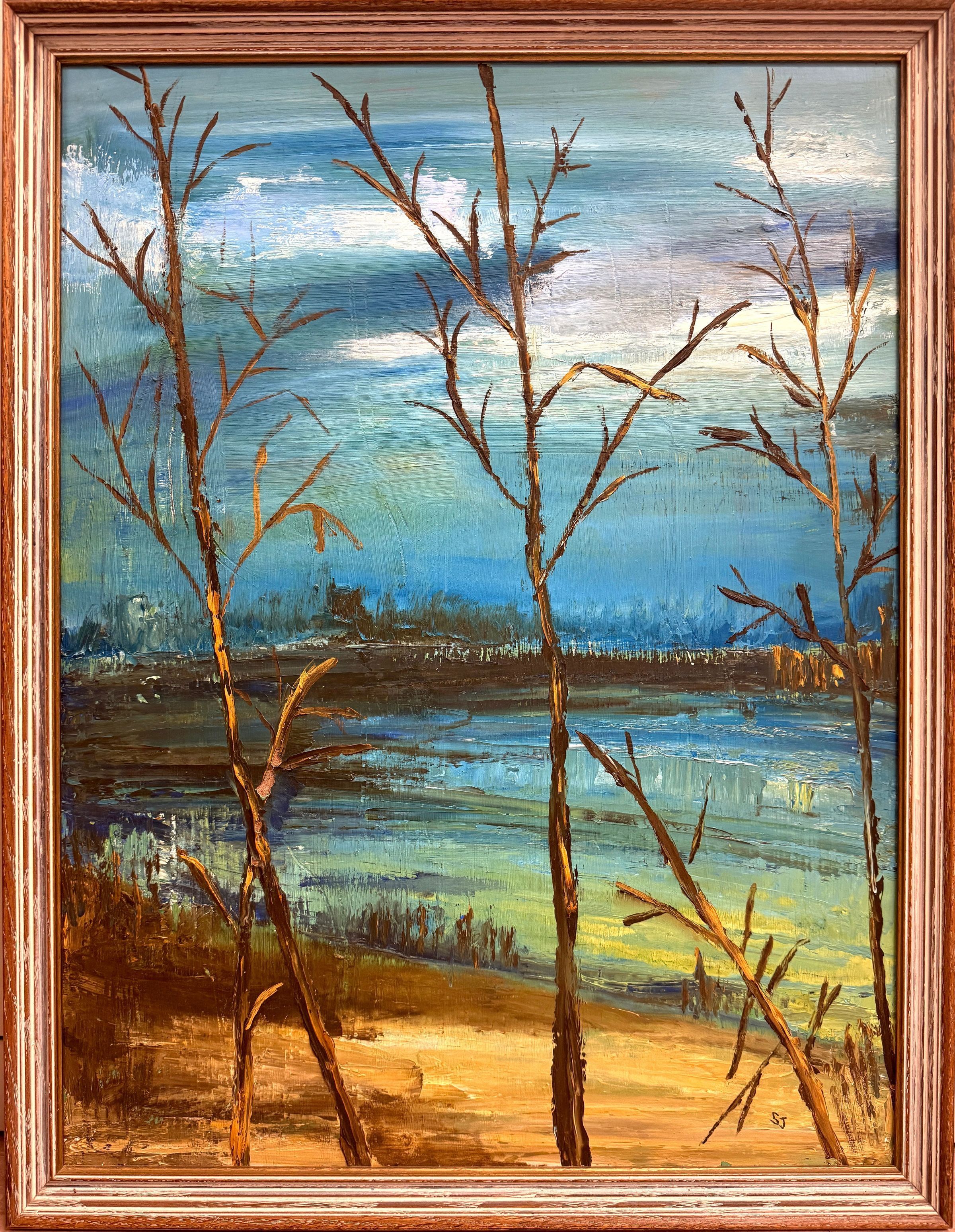 Title [assigned by archives]: Trees by a Lake Sister Joseph Alphonsus (Jo) Dederichs, CCVI (1923 – 2017) employed a painterly style to depict a row of trees in front of a lake. The trees, with slender trunks and bare branches, sit before a grassy patch of sand. A lake stretches out in front of the shoreline, reflecting yellow from the sun. Like many of Sister Jo’s other works, this painting captures her appreciation of the natural world. Título [asignado por los archivos]: Árboles junto a un lago Sor Joseph Alphonsus (Jo) Dederichs, CCVI (1923-2017), empleó un estilo pictórico para representar una hilera de árboles frente a un lago. Los árboles, con troncos esbeltos y ramas desnudas, se asientan sobre una franja de arena cubierta de hierba. Un lago se extiende frente a la orilla, reflejando el amarillo del sol. Como muchas otras obras de Sor Jo, esta pintura captura su aprecio por el mundo natural.