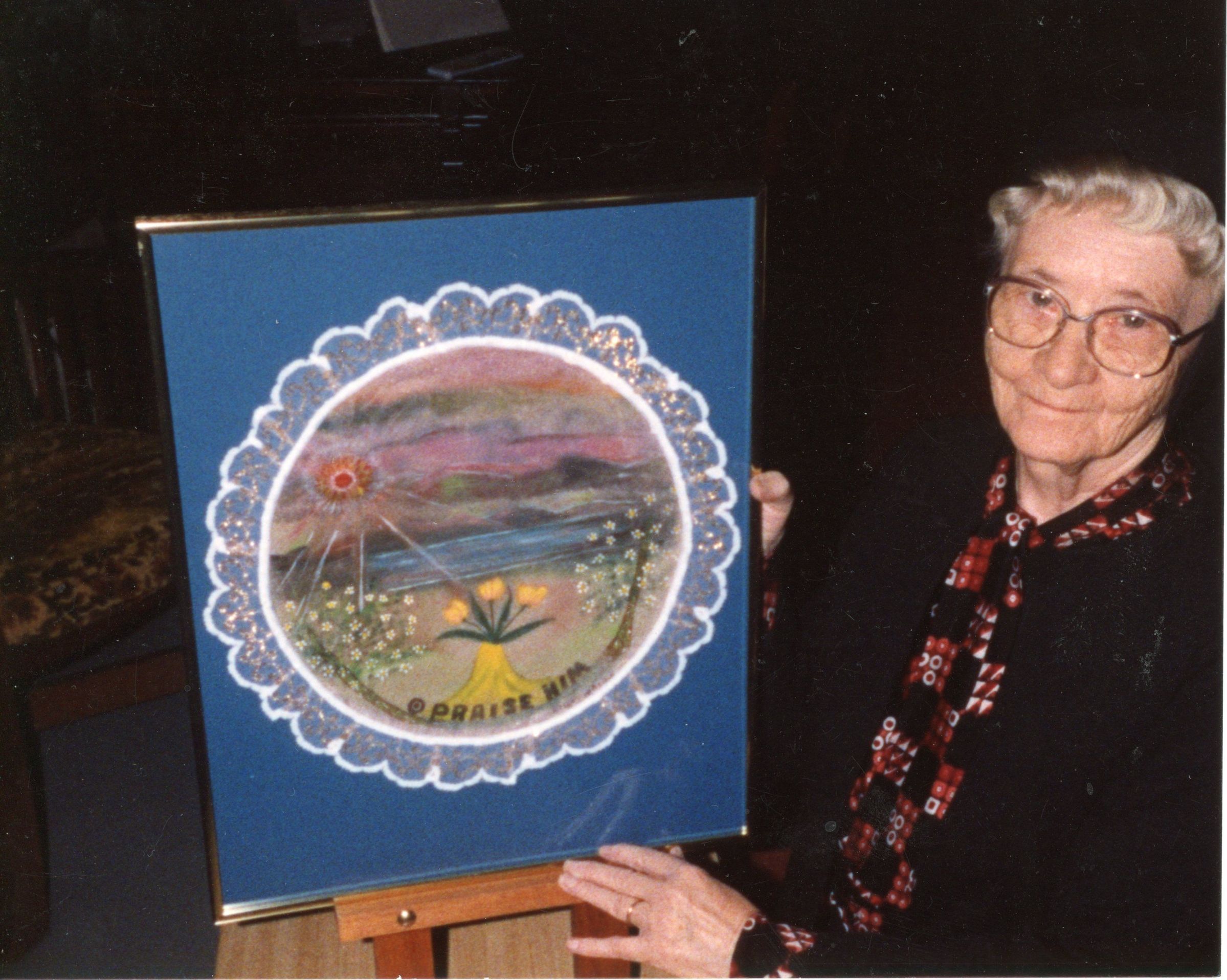 Sister Mary had no formal artistic training, but took up art during her retirement at the Incarnate Word Retirement Center in San Antonio. She credited the CCVI-run Rebarn Center for Spirituality and the Arts with providing her opportunities to take classes and develop her artistic abilities. She described her artistic process by stating, “Permeating my art is a great love of nature and the spiritual. I see God’s grandeur and creative power ‘flaming out like shining from shook foil.’ Our Creator is The Artist from Whom I glean inspiration for works depicting Christian symbolism. My talent and spare time are gifts for my golden years and for this- I praise God.”
