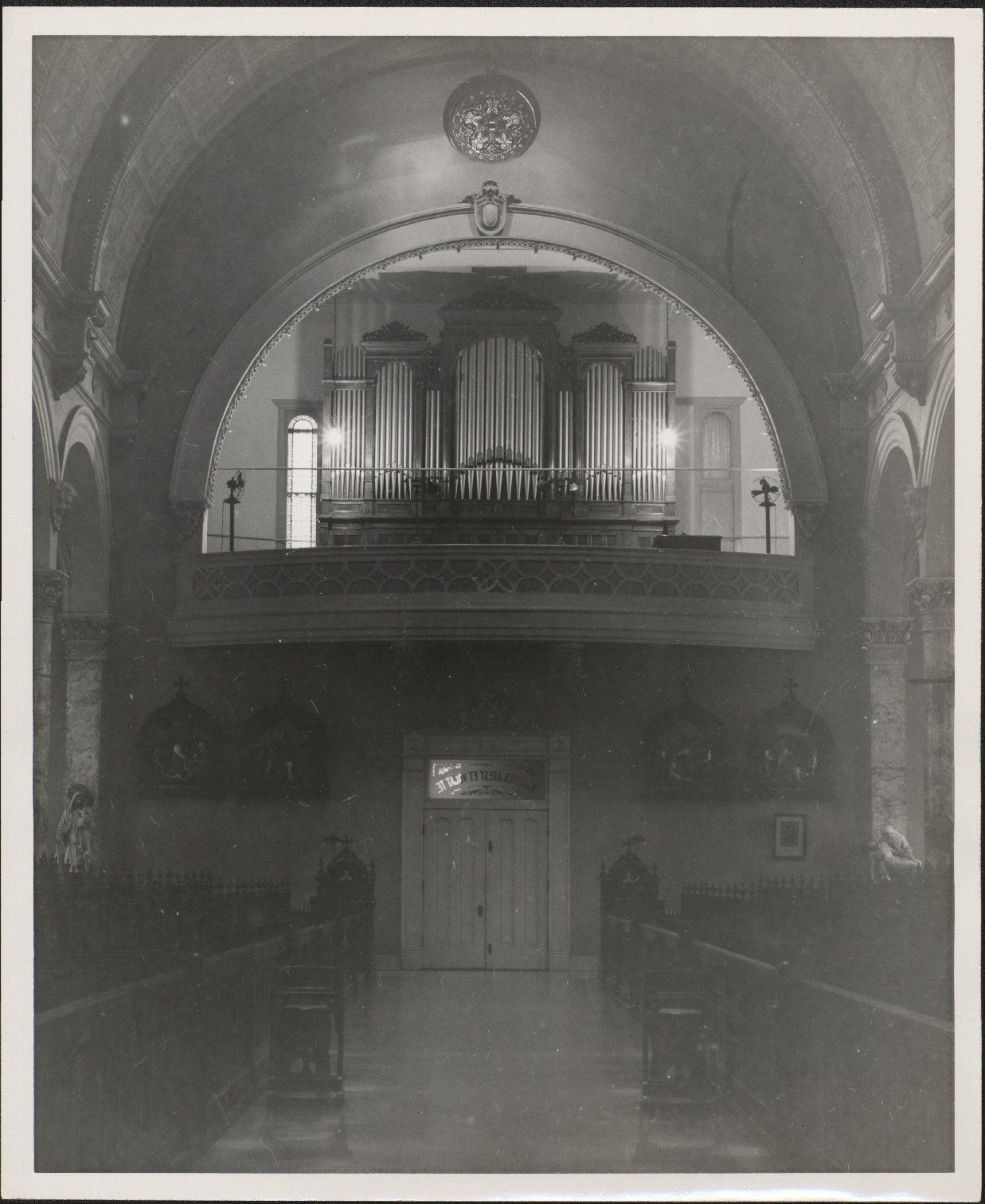 The interior of the chapel featured a vaulted ceiling of embossed metal, scagliola columns, a dome-shaped sanctuary, and an impressive altar of Carrara marble with onyx columns. The altar was donated by Dan Sullivan, Sr., in memory of his mother Annie Cotter Sullivan, longtime benefactor of the sisters. Placed in four niches around the main altar were the statues of four founders of religious orders: St. Benedict, St. Francis, St. Dominic, and St. Ignatius.