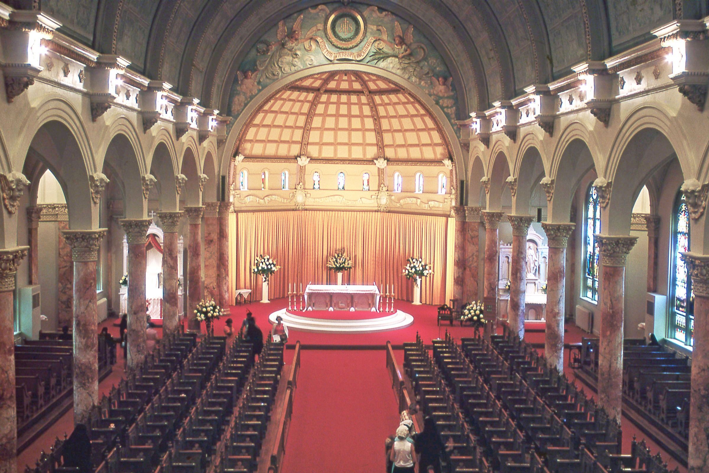 El interior de la capilla presentaba un techo abovedado de metal repujado, columnas de escayola, un santuario en forma de cúpula y un impresionante altar de mármol de Carrara con columnas de ónix. El altar fue donado por Dan Sullivan, Sr., en memoria de su madre, Annie Cotter Sullivan, benefactora de las hermanas durante muchos años. En cuatro nichos alrededor del altar mayor se colocaron las estatuas de los cuatro fundadores de las órdenes religiosas: San Benito, San Francisco, Santo Domingo y San Ignacio.